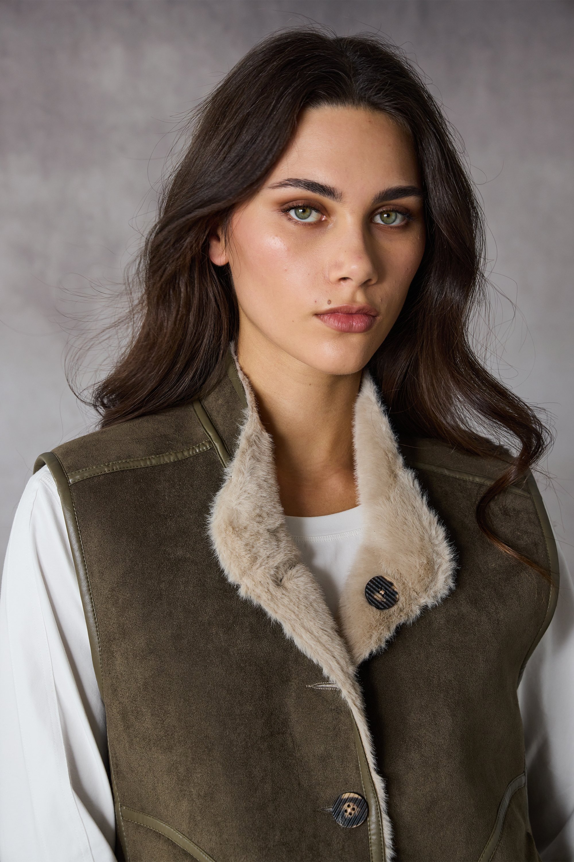 The Aspen Vest is a reversible design offering two stylish looks in one. Crafted for comfort and versatility, it features a modern stand neckline, textured natural buttons, and bound armholes. Perfect for layering, this on-trend piece combines functionality with effortless style for any occasion.