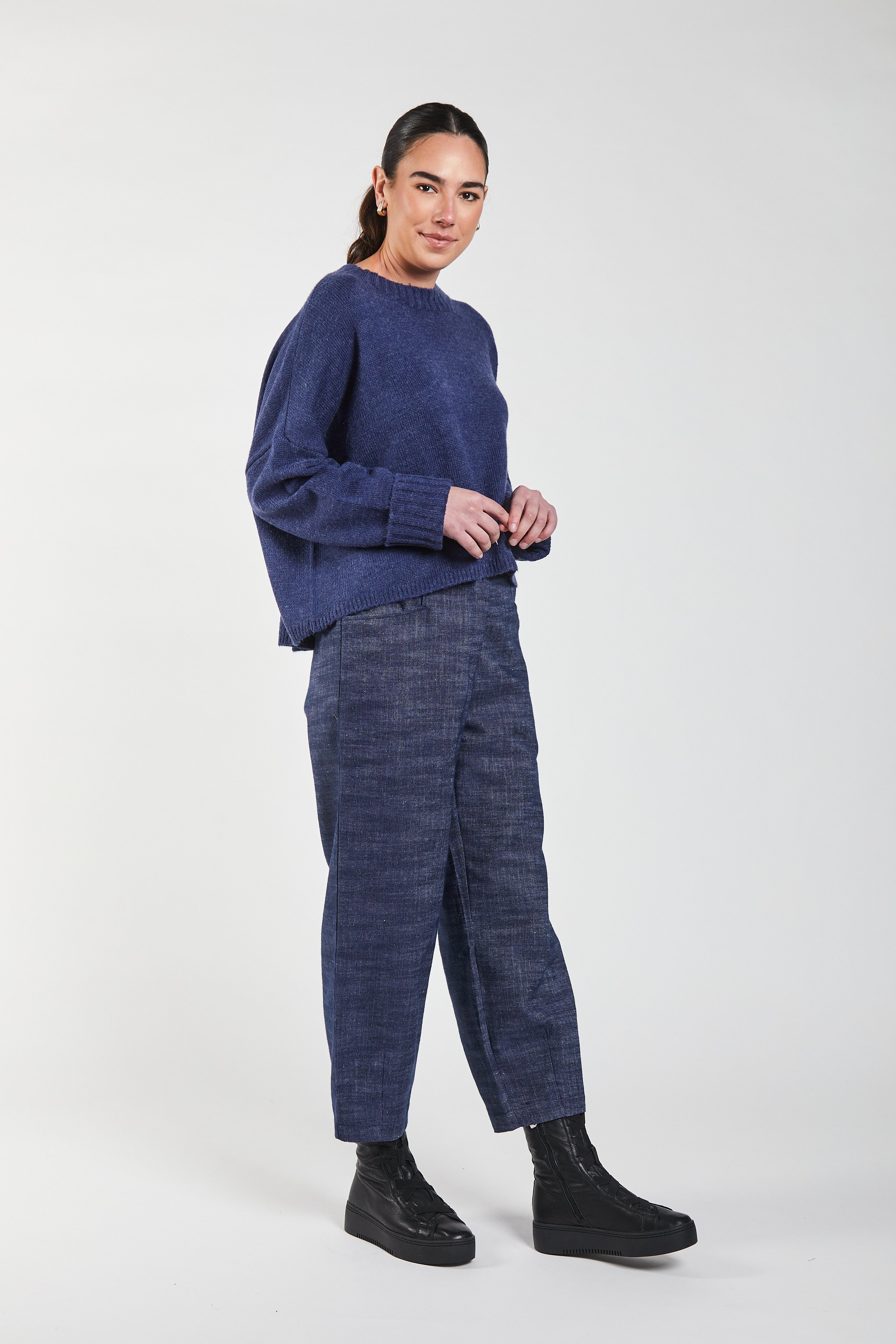 The Beaucoup Oversized Sweater is a beautifully relaxed, oversized knit that combines effortless style with sophistication. Crafted in a soft luxurious hand feel, draping fluidly over the body, creating a silhouette that feels both modern and easy to wear. The design features a slight boat-shaped crew neckline finished with a finely ribbed edge, giving a subtle touch of texture around the neck. The shoulder seams are deliberately dropped, enhancing the slouchy, relaxed fit, while the sleeves are generously cut with a soft volume that tapers into wide, turned-back rib cuffs, a considered detail that adds both comfort and structure. The body of the jumper falls into shape, with a hemline that’s slightly curved. The ribbed hem provides gentle weight, helping the jumper maintain its shape while moving gracefully. From the side, the soft drape of the knit is highlighted, falling away from the shoulder, giving an effortless, relaxed silhouette. The overall look is one of understated refined thoughtful proportions, making it a versatile, timeless wardrobe essential.