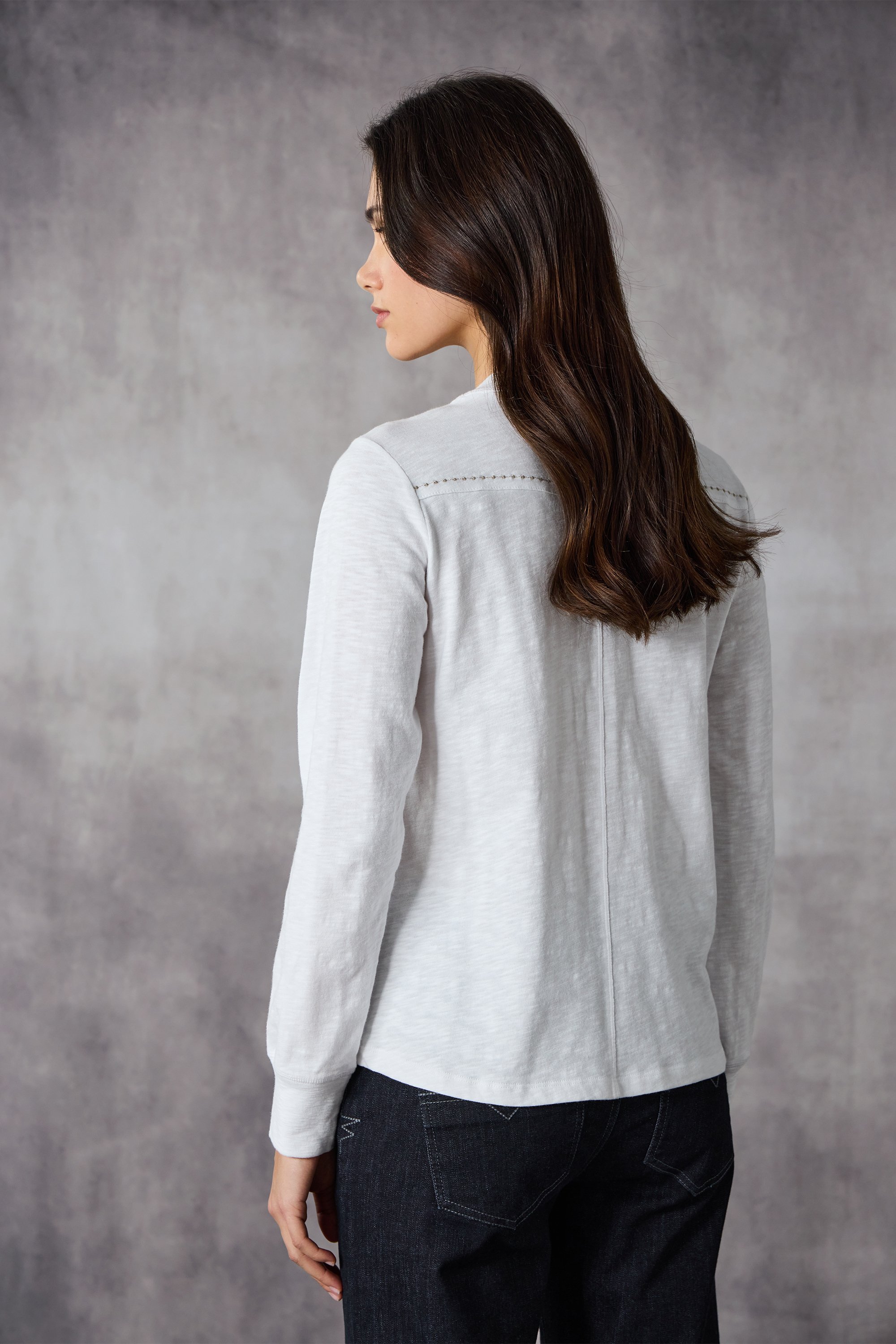 Elevate your modern comfort with our Carlo Top. Made from cotton, it boasts a deep placket neckline adorned with snap domes and embroidery detailing across the yoke which adds a touch of sophistication.