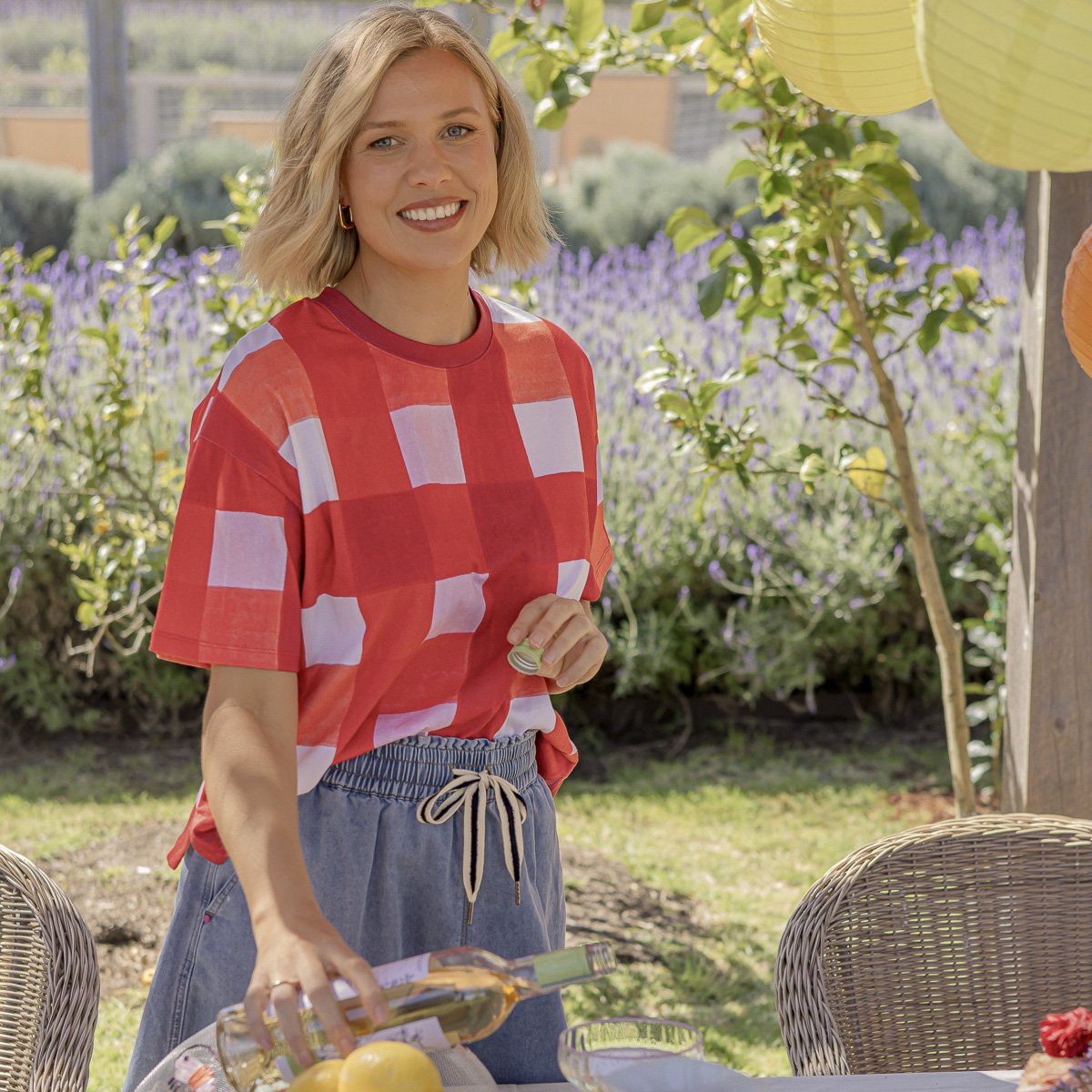 Featuring our exclusive Christmas Poppy Check the Edin Tee bring the fun of the party to any outfit with the colour and comfort of a 100% cotton tee.