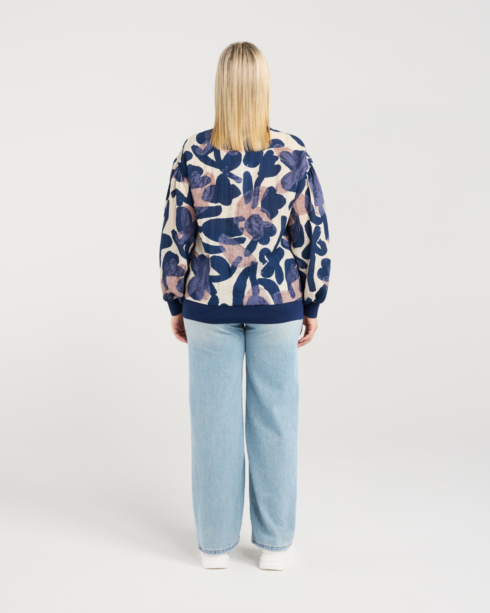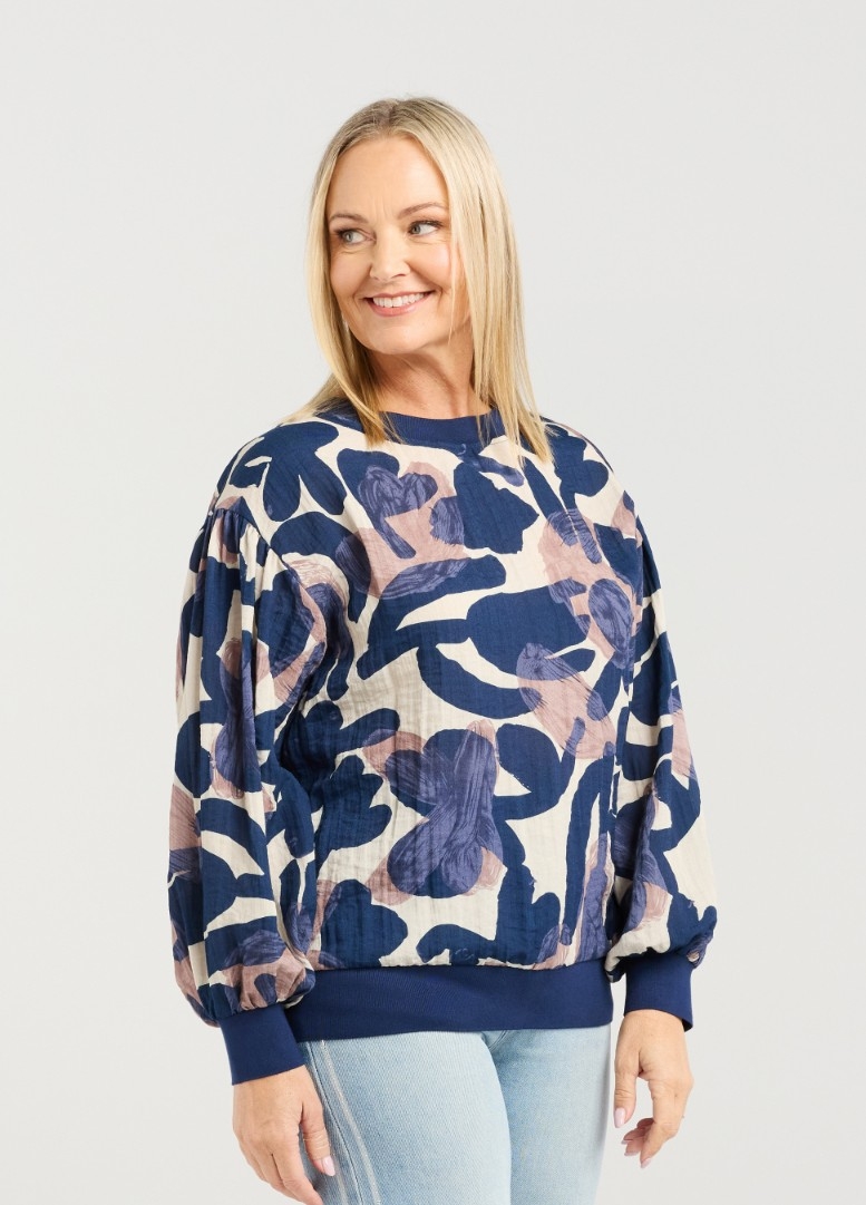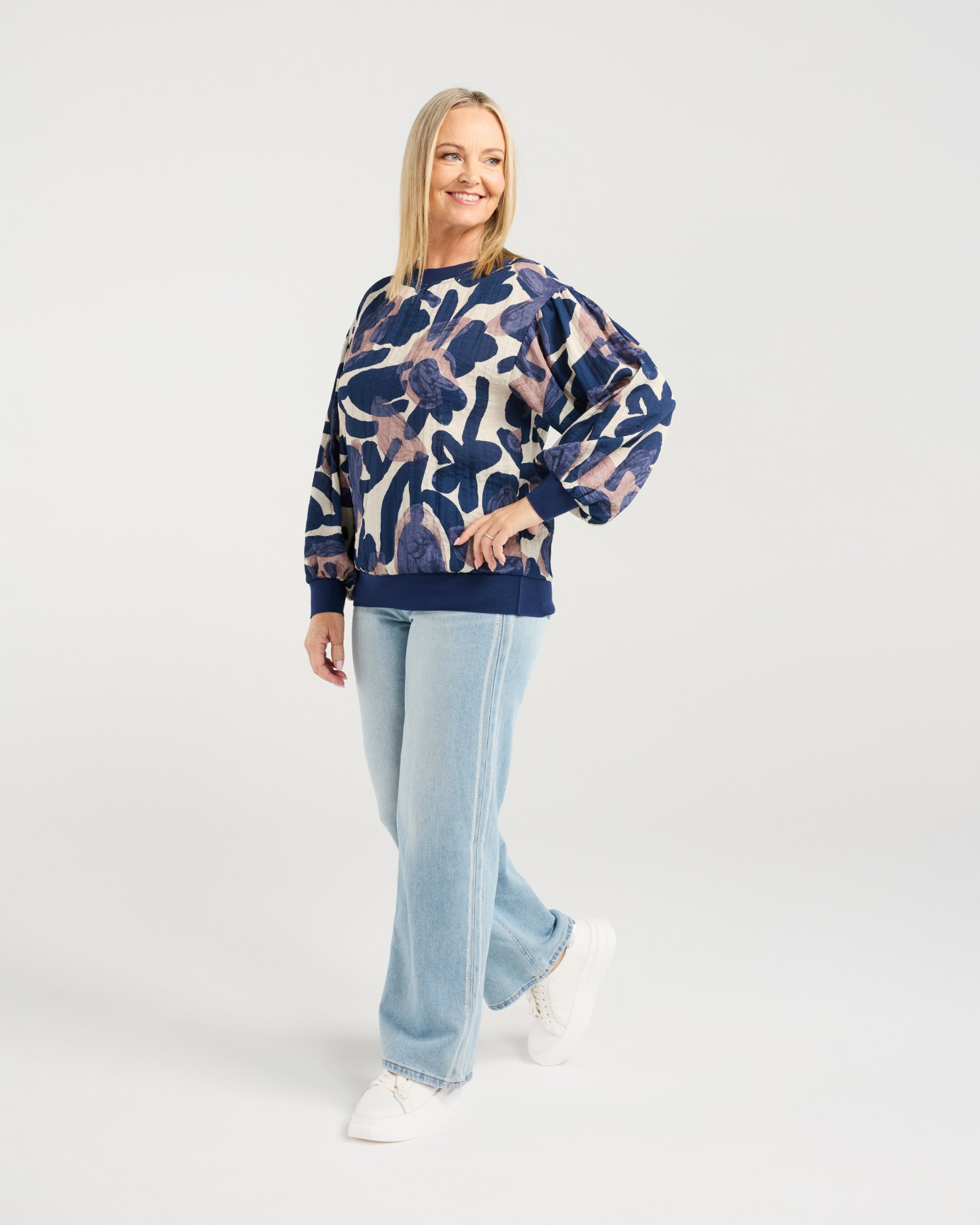 This top features long, voluminous sleeves with elasticated cuffs and a matching hem for a soft, relaxed fit. The classic round neckline completes the effortlessly chic silhouette, making it a versatile piece for winter layering.