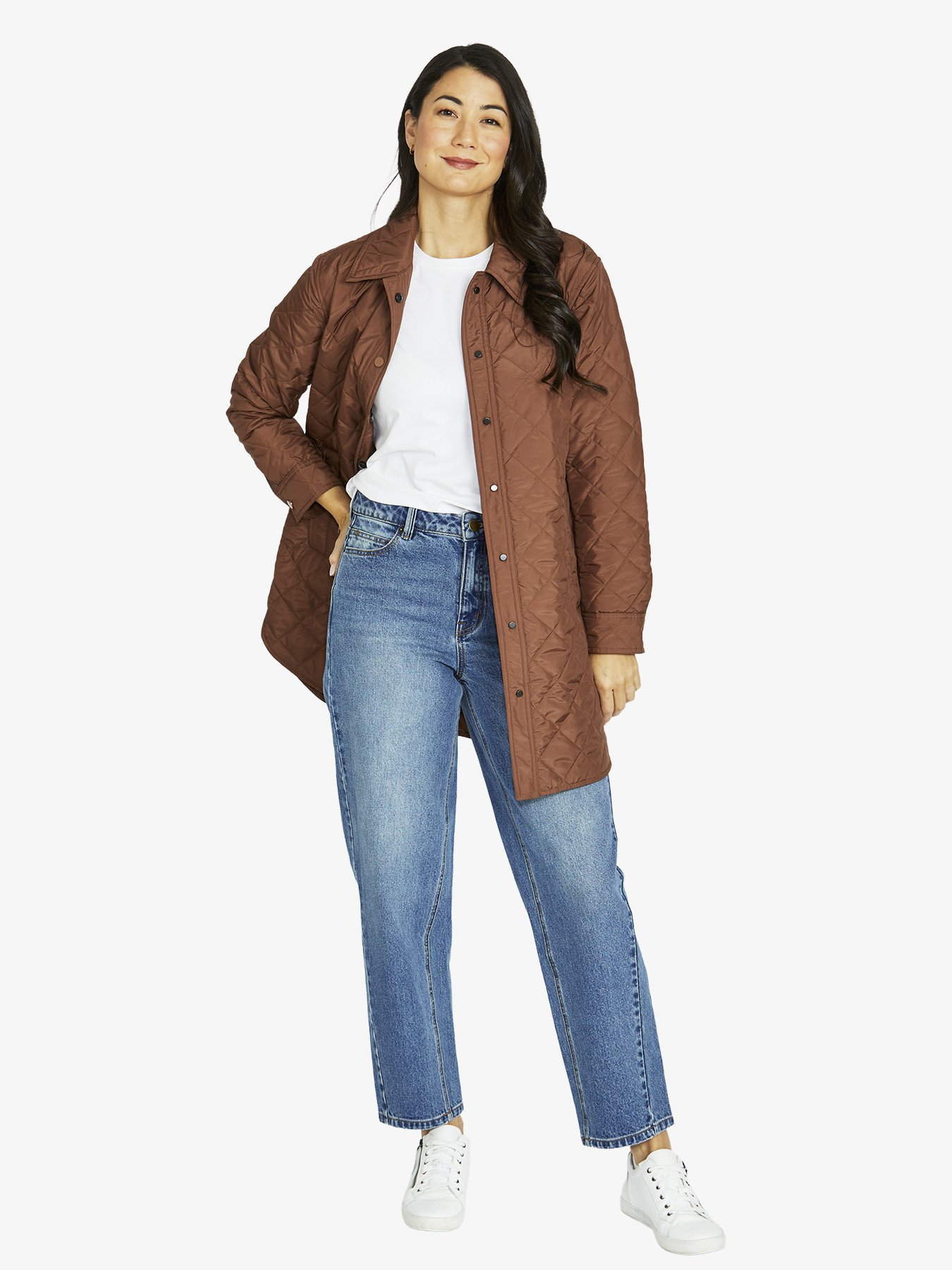 Long Puffer jacket with diamond quilted design, slightly curve hemline.