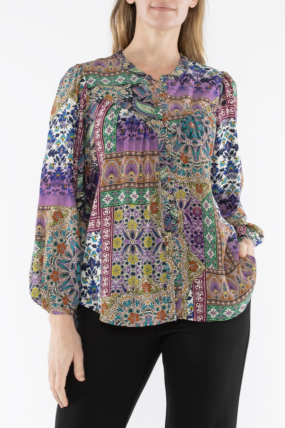 PATCHWORK FLORAL TOP.