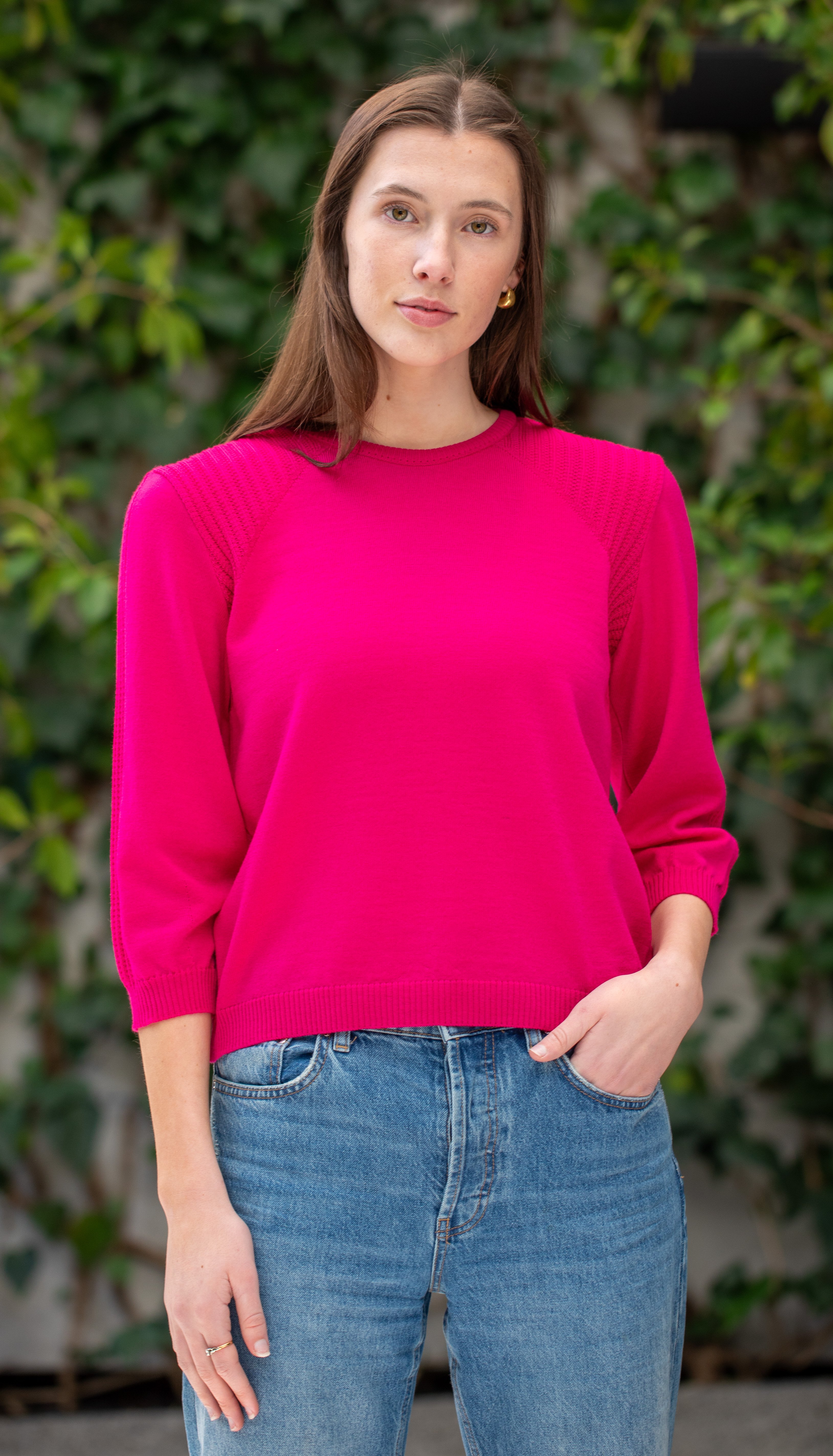 Rib shoulder detail sweater.