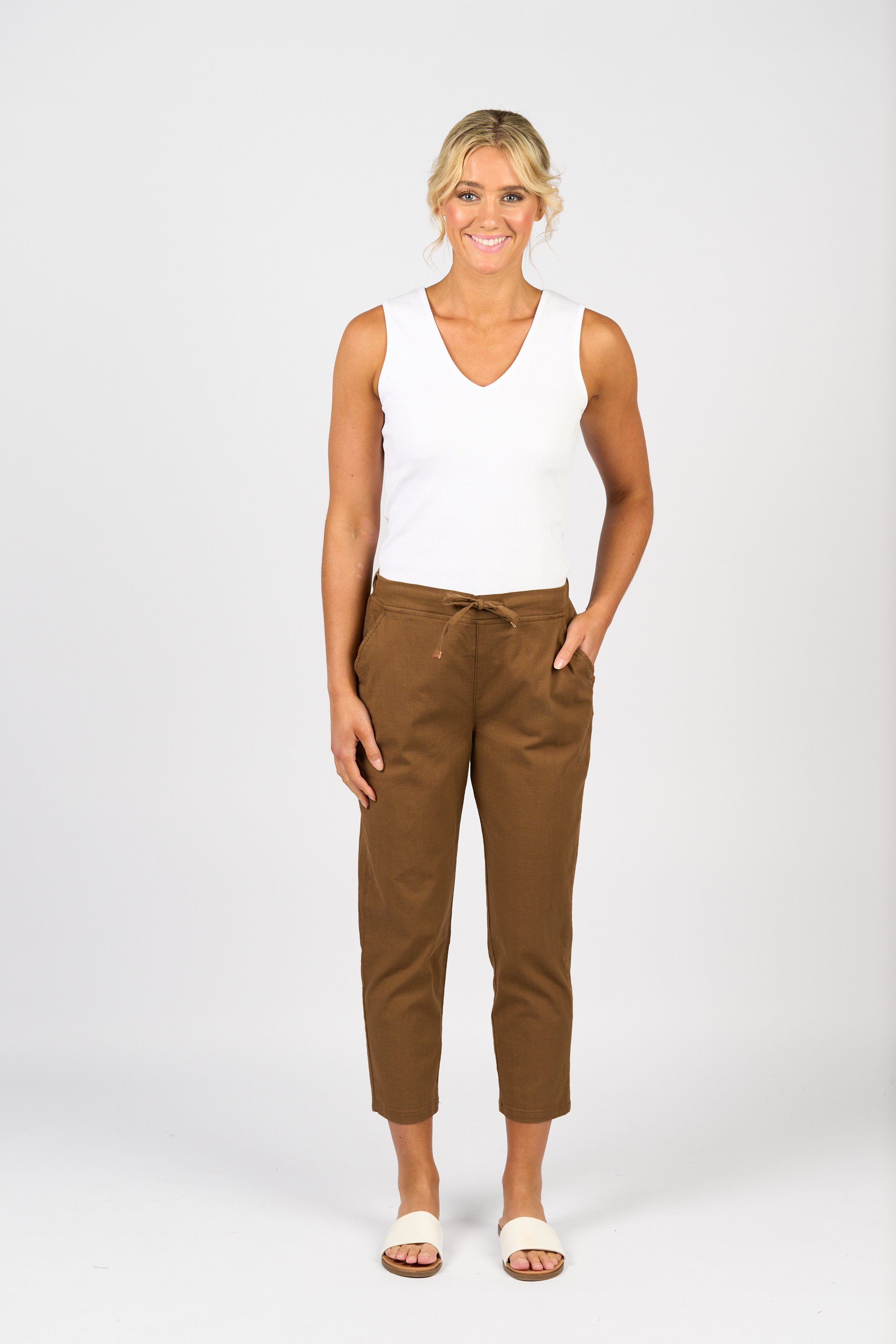 A 7/8 length skinny leg pant in black, made from a soft cotton blend with added stretch for comfort. Featuring an elastic waistband with drawstring, angled front pockets, and faux back welt pockets for a more tailored finish.• Elastic waistband with drawstring• Two front side angle pockets• Two back faux welt pockets• 'Vassalli' embroidery above wearers right-hand back pocket• Model wears size 1065% Cotton 30% Viscose 5% Elastane
