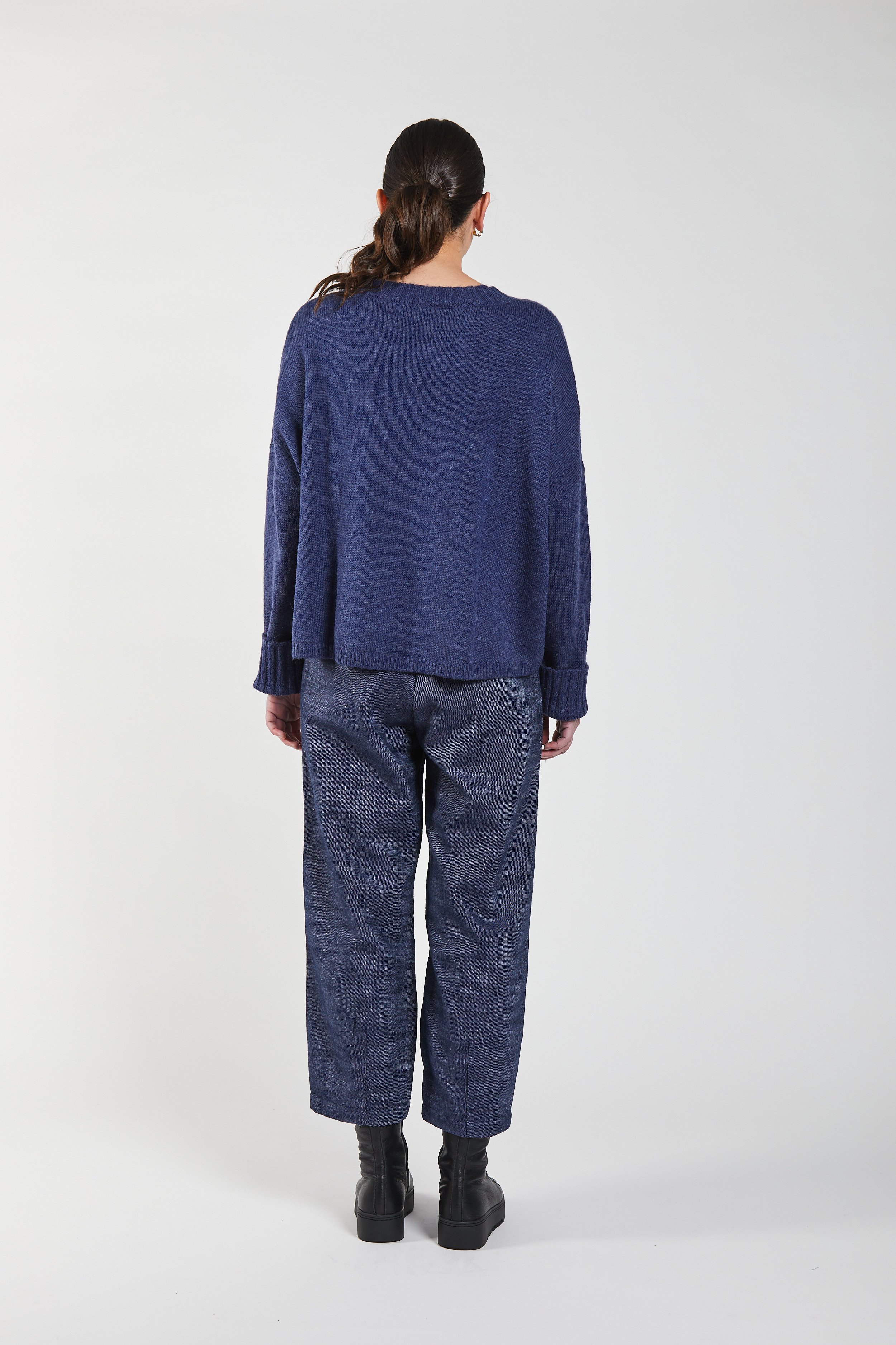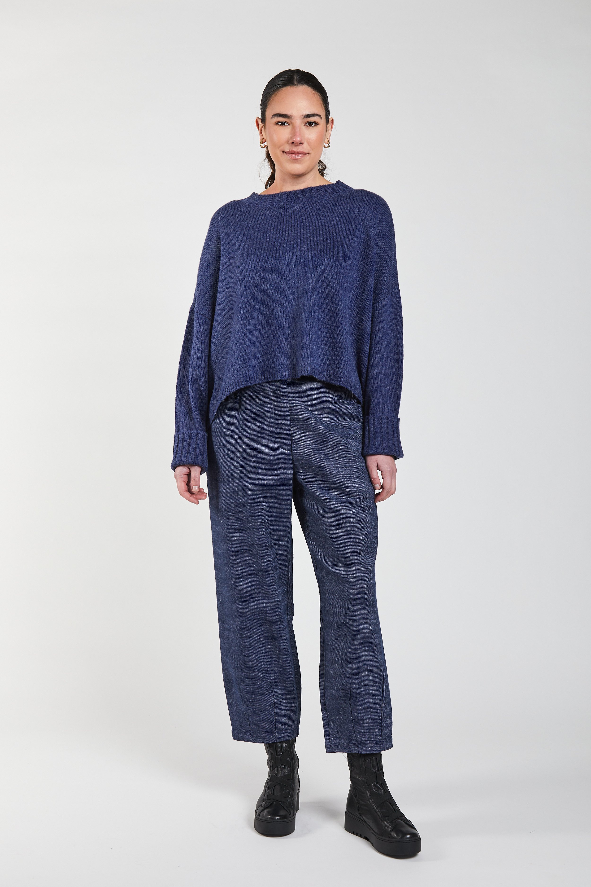 The Beaucoup Oversized Sweater is a beautifully relaxed, oversized knit that combines effortless style with sophistication. Crafted in a soft luxurious hand feel, draping fluidly over the body, creating a silhouette that feels both modern and easy to wear. The design features a slight boat-shaped crew neckline finished with a finely ribbed edge, giving a subtle touch of texture around the neck. The shoulder seams are deliberately dropped, enhancing the slouchy, relaxed fit, while the sleeves are generously cut with a soft volume that tapers into wide, turned-back rib cuffs, a considered detail that adds both comfort and structure. The body of the jumper falls into shape, with a hemline that’s slightly curved. The ribbed hem provides gentle weight, helping the jumper maintain its shape while moving gracefully. From the side, the soft drape of the knit is highlighted, falling away from the shoulder, giving an effortless, relaxed silhouette. The overall look is one of understated refined thoughtful proportions, making it a versatile, timeless wardrobe essential.