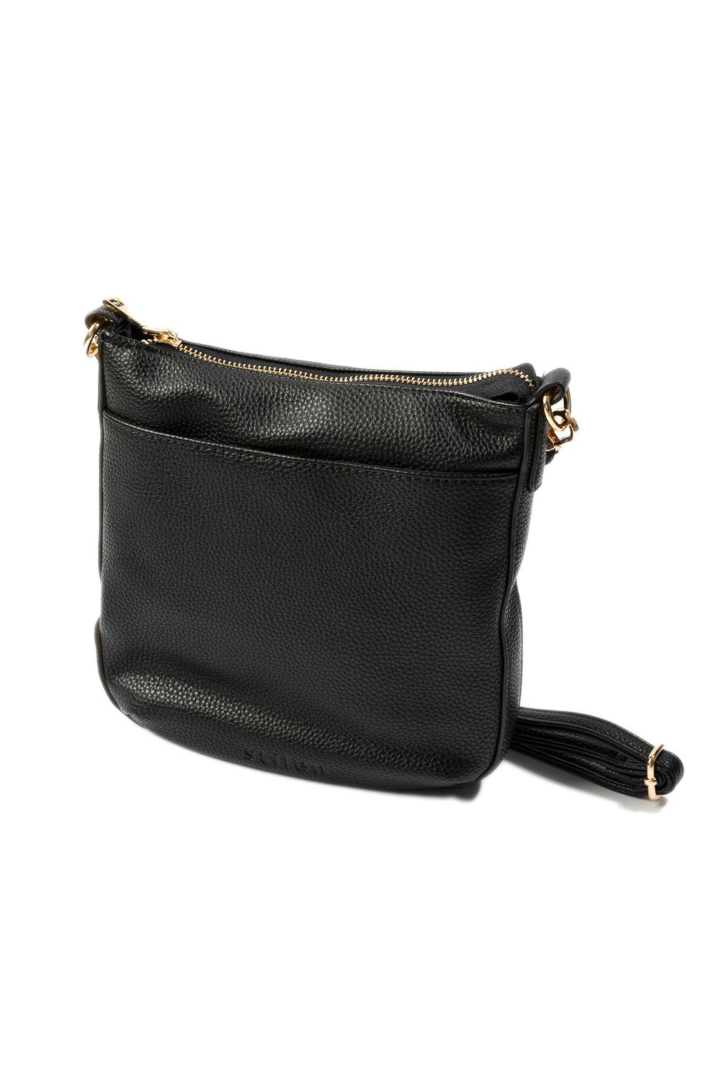 Quality PU leather bag with adjustable length crossbody strap and gold hardware.