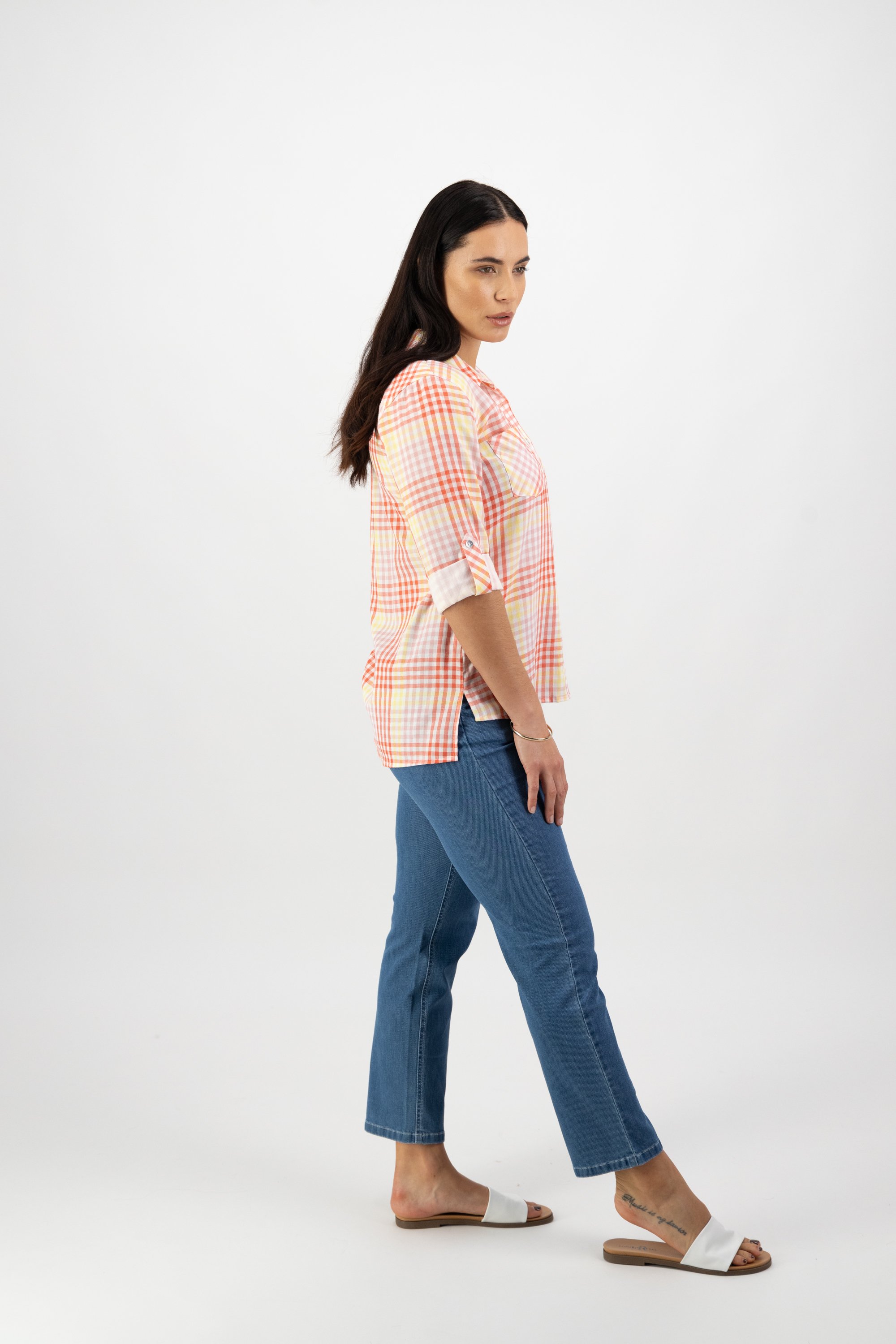 • Vassalli Button Front Shirt with Tab Sleeve.