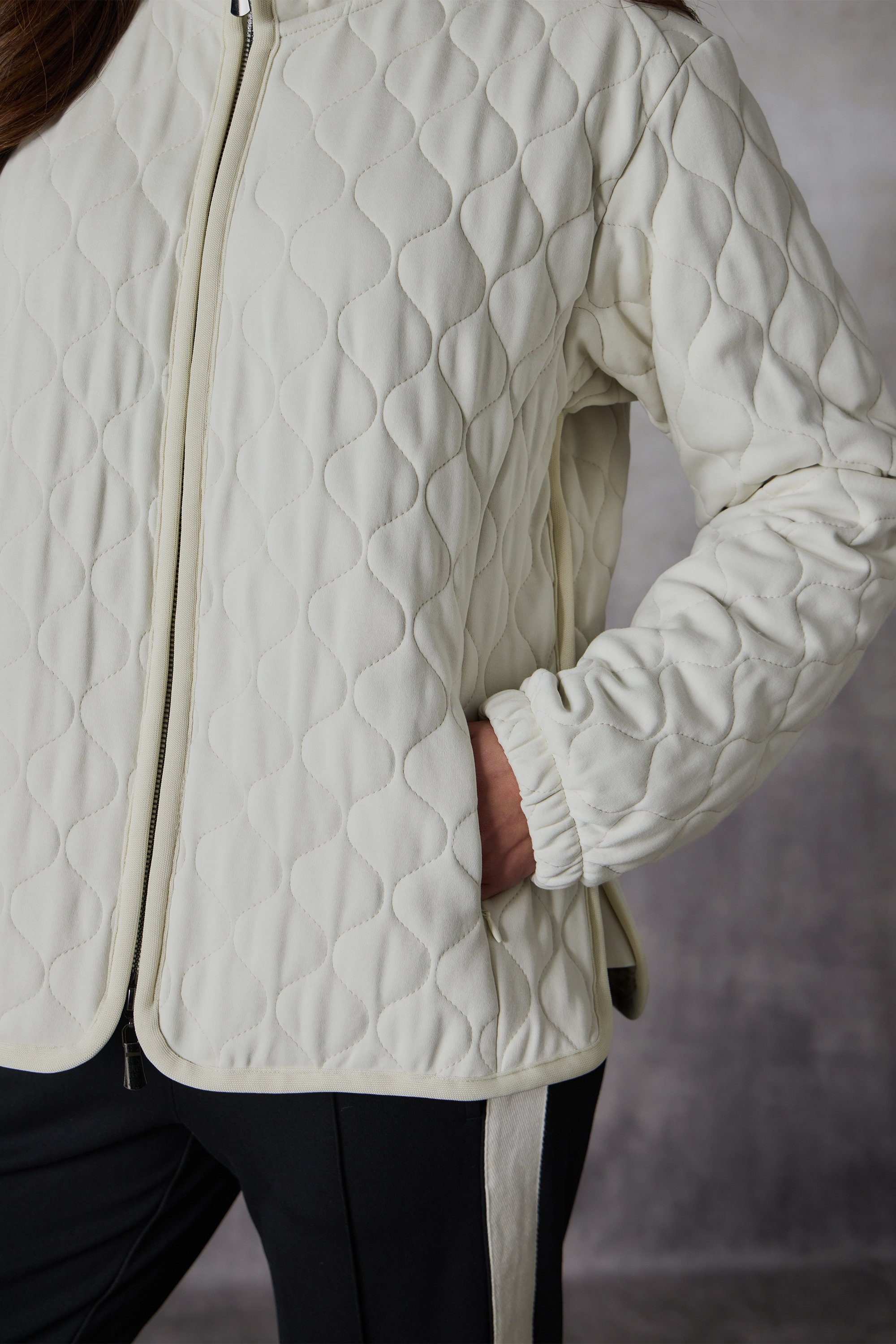 Elevate your style with our Carlo Jacket, a modern and relaxed silhouette crafted from a soft cotton blend. A padded quilted jacket designed for style and comfort. It boasts a stand-neckline for a modern look. Featuring a metal zip centre front closure and bound edge detail and rounded hemline with godet side splits.