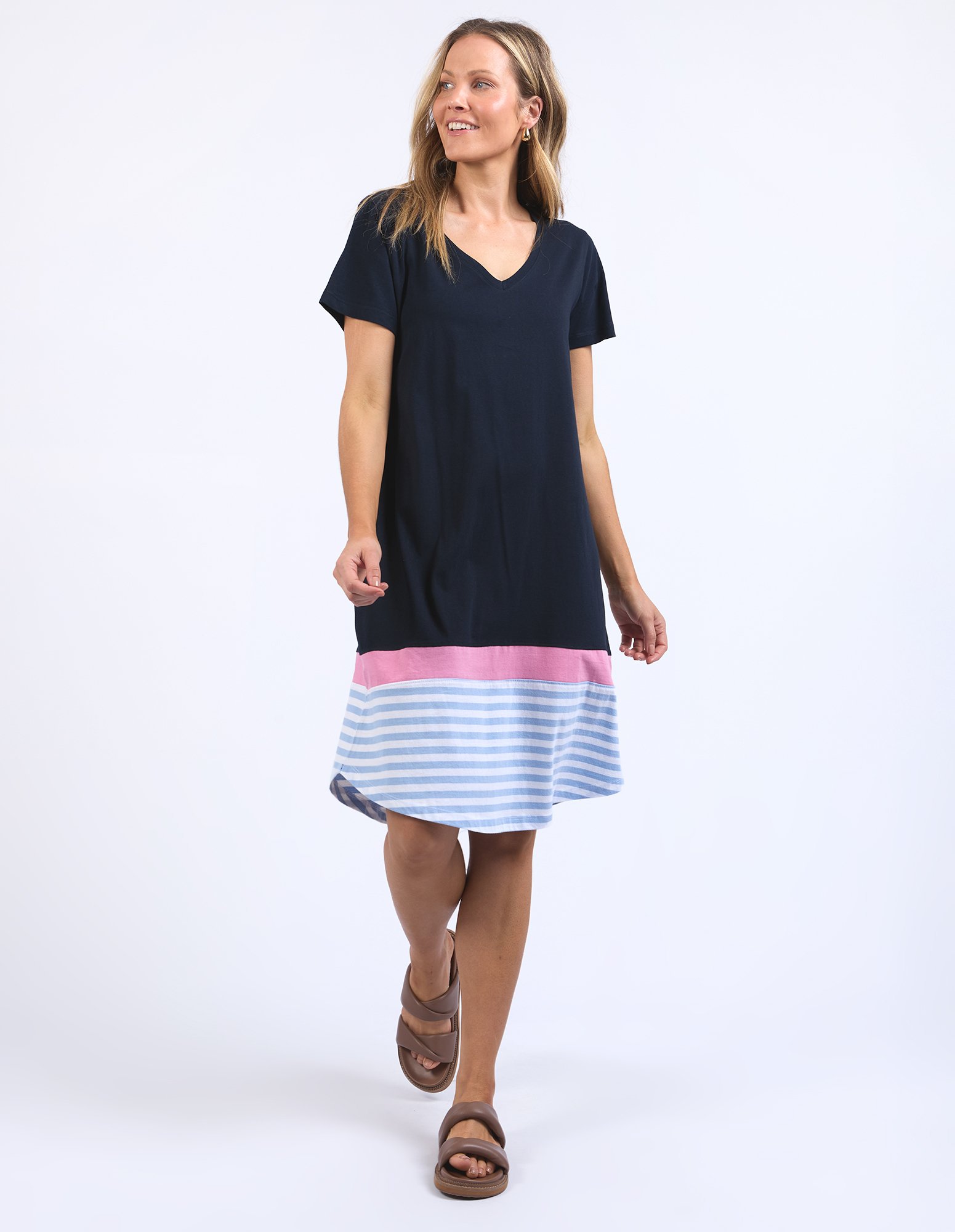 Fun Comfort In 100% Cotton. The Draw The Line Tee Dress From Elm Features Short Sleeves, A Flattering Curved Hem And Bold Colour Pop Stripe At The Bottom For Extra Fun!