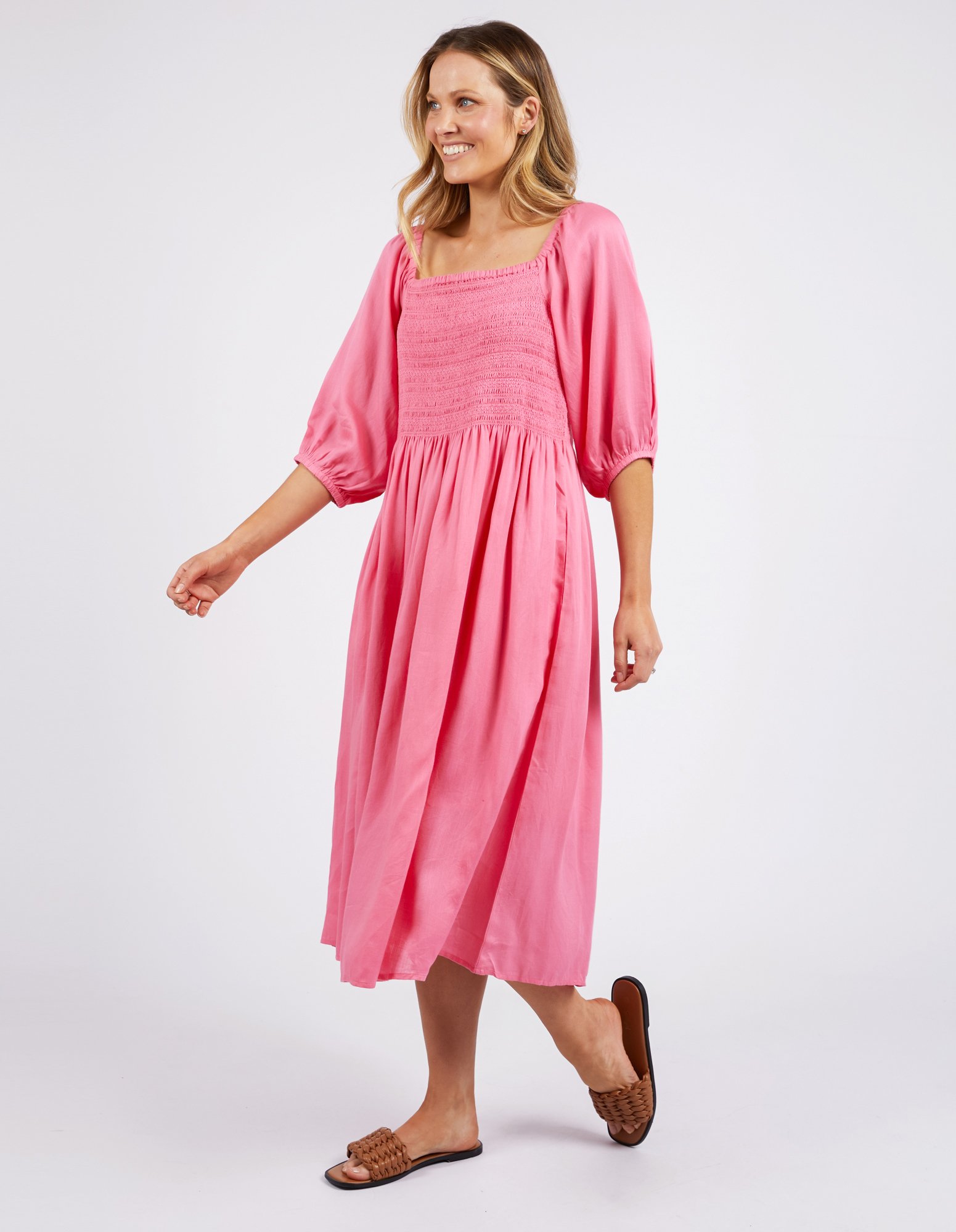 Pretty And Perfect The Dusk Midi Dress Is Stylish Simplicity. Featuring 3/4 Length Puff Sleeves, A Flattering Shirred Bodice And It Even Has Pockets! Dress Her Up Or Down The Dusk Midi Is The Versatile Style You Need This Season.