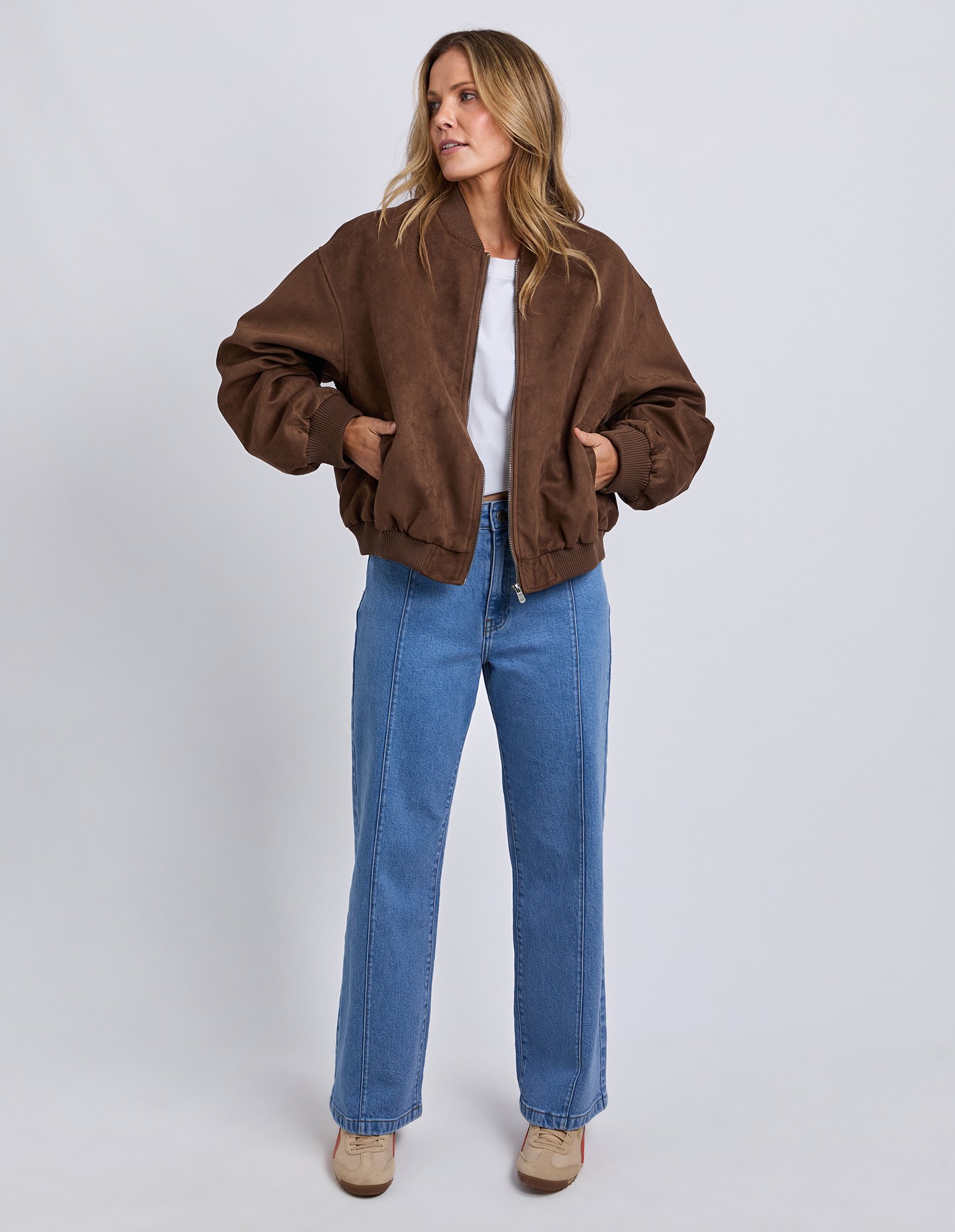 The Evie Suede Bomber is here to level up your outerwear game. With a suede-look finish and classic bomber fit, it’s the perfect piece to throw on when you want something more than just a basic jacket. Zip it up, hands in pockets, done.