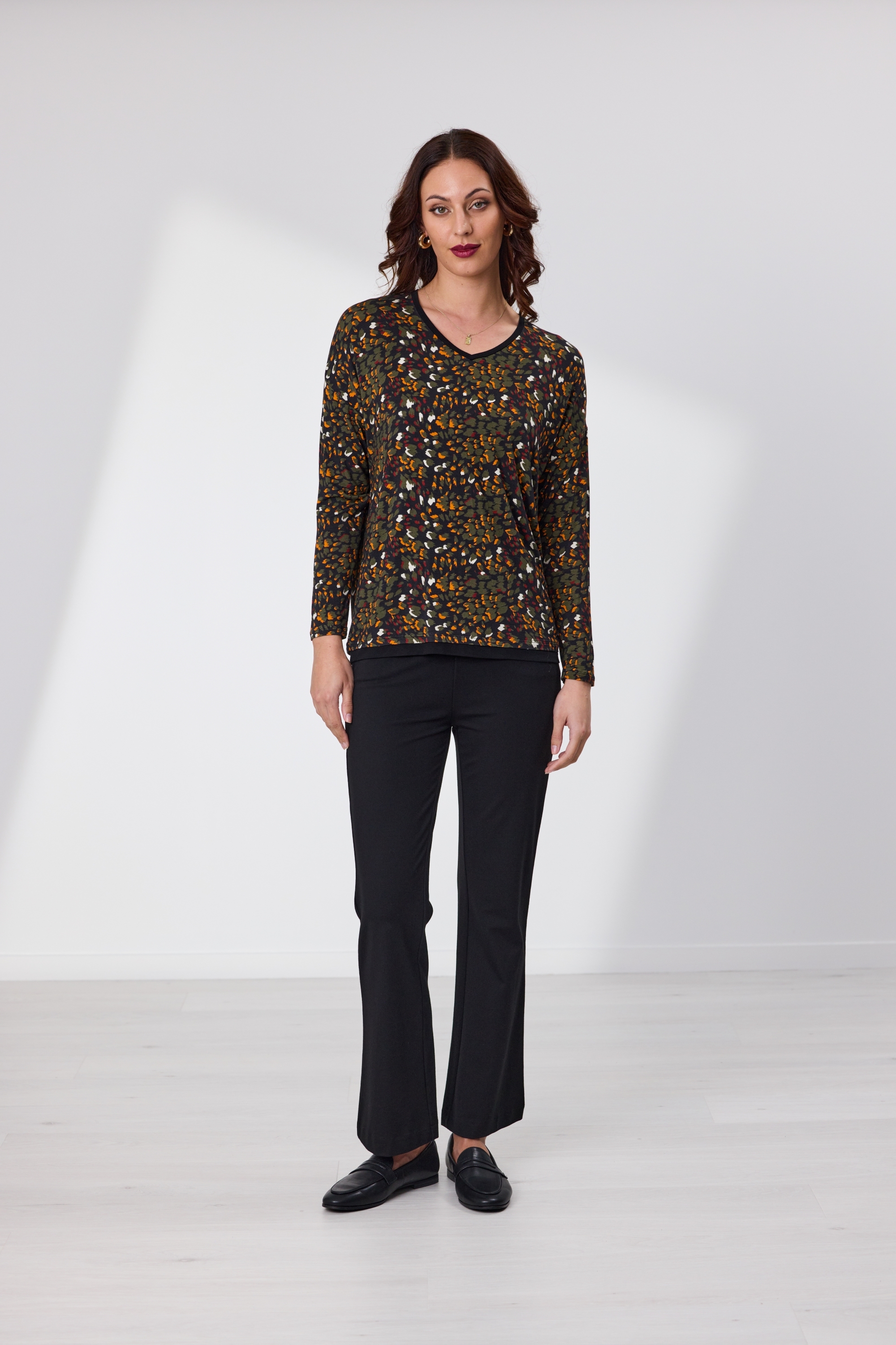 The ultimate relaxed fit top. Dropped shoulder, V neck, long sleeves.