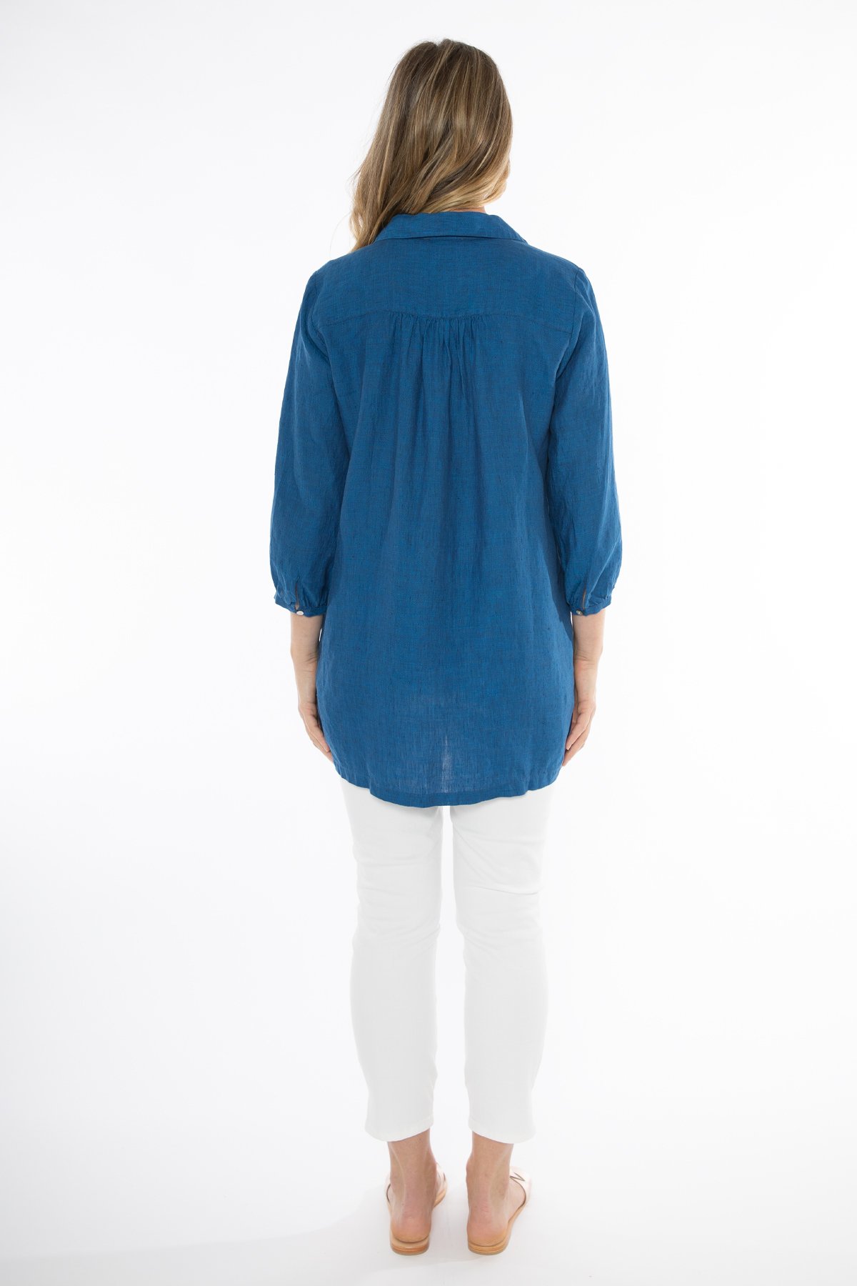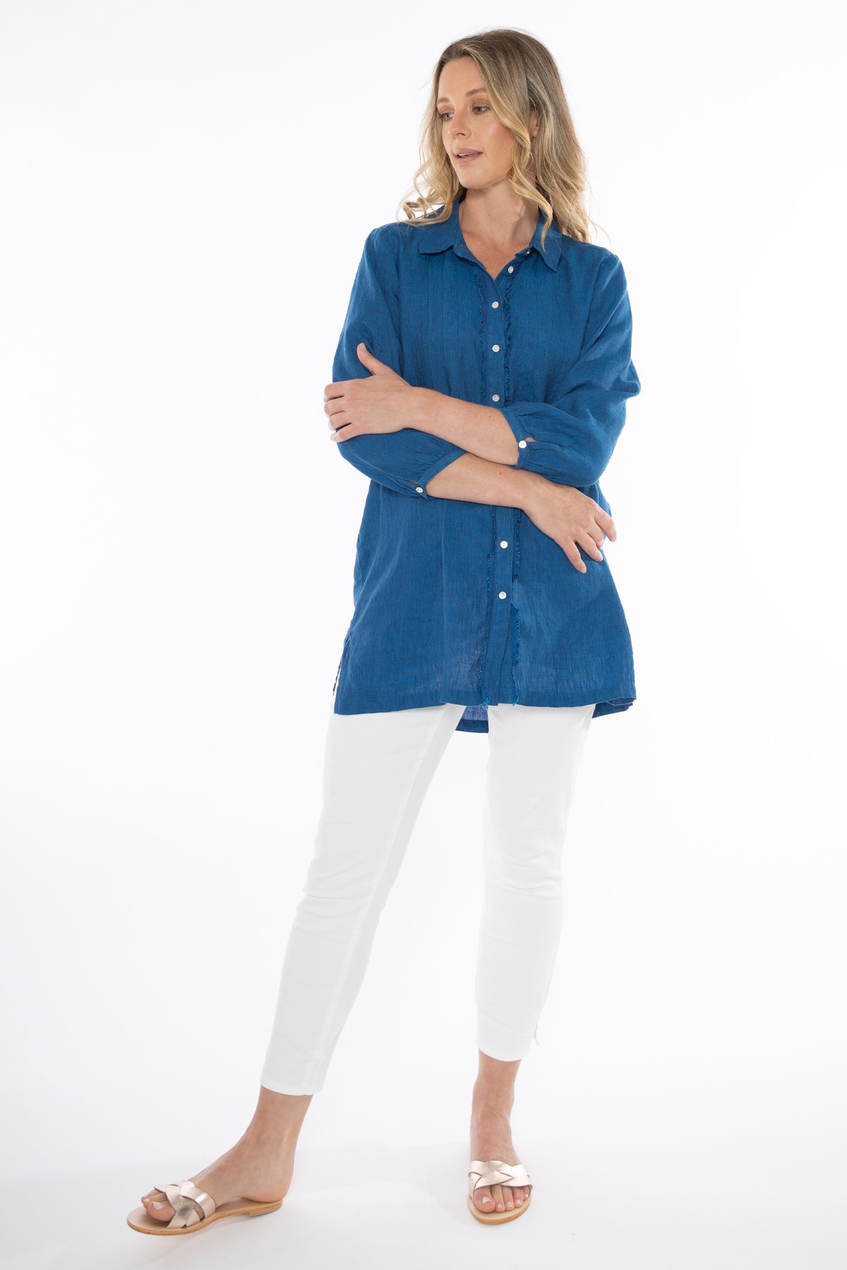Classic long tunic shirt. Great worn open as layering piece.100% Linen.