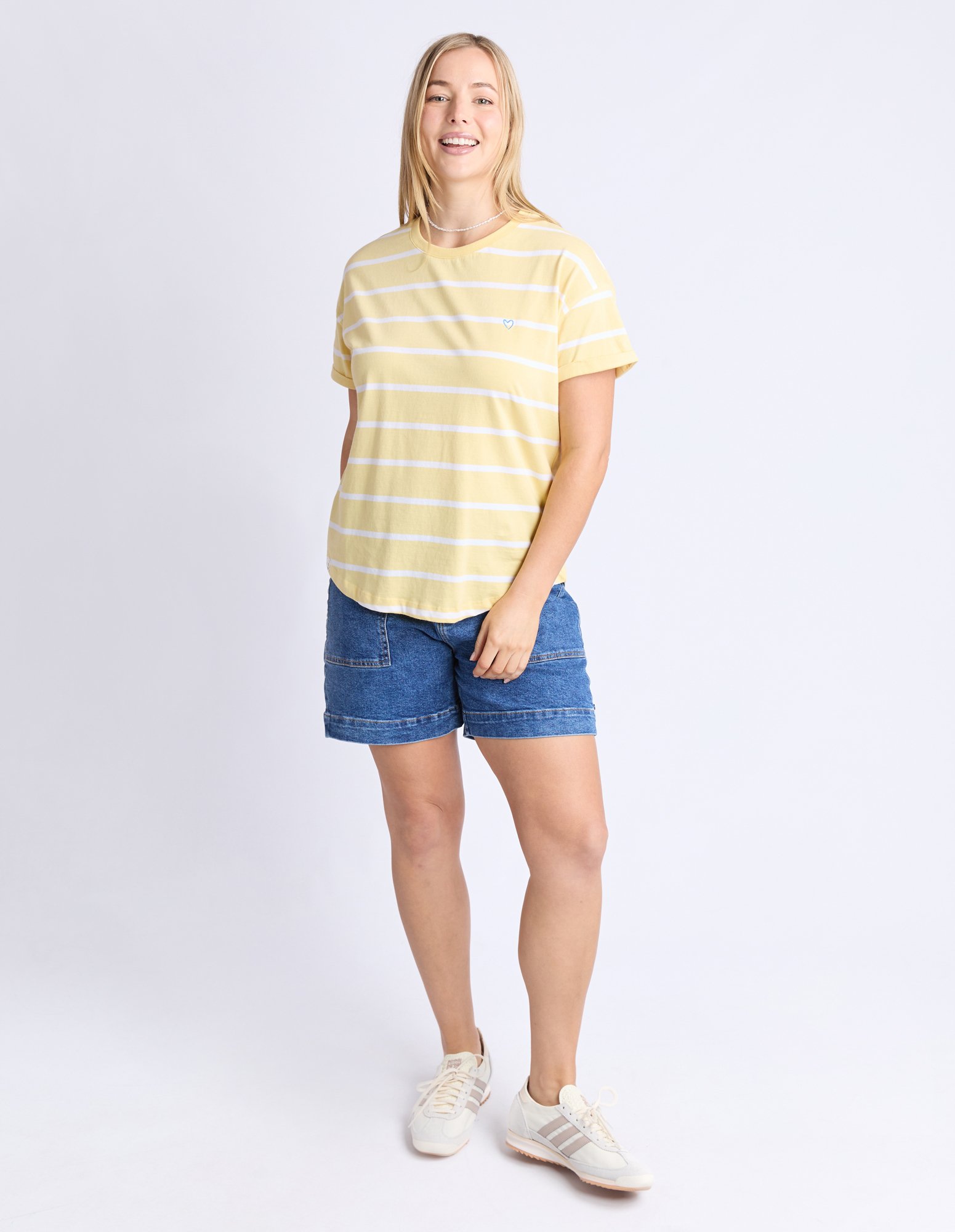 A Great Striped Casual Tee Ideal For Your Seasonal Wardrobe. Featuring A Cute Heart Embroidery On The Chest And Turned-Up Cuffs, This Lightweight Cotton Jersey Tee Is A Seasonal Pleaser.