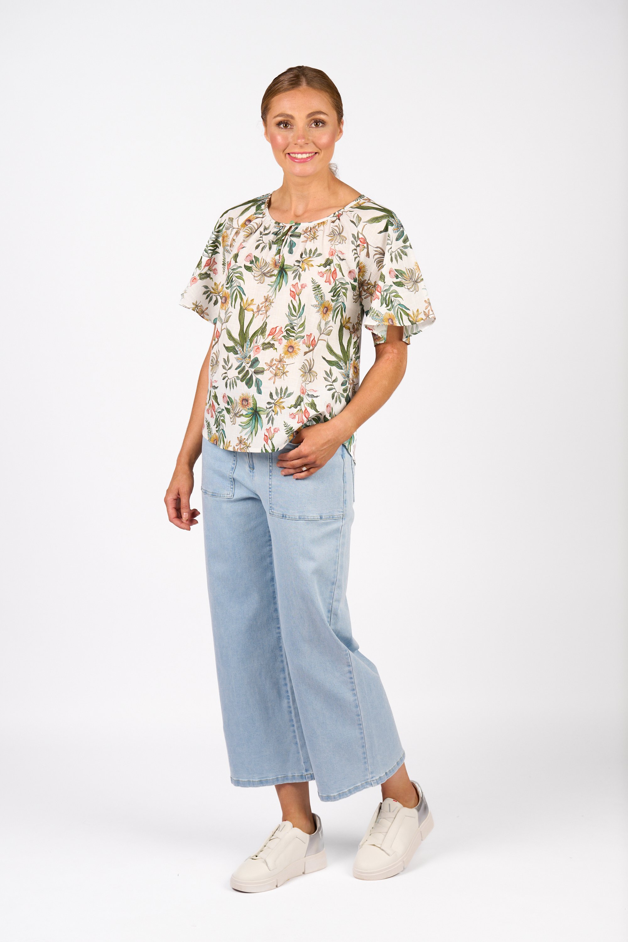 • Bound round neckline with centre front placket fastened with an irregular shaped enamel shank button