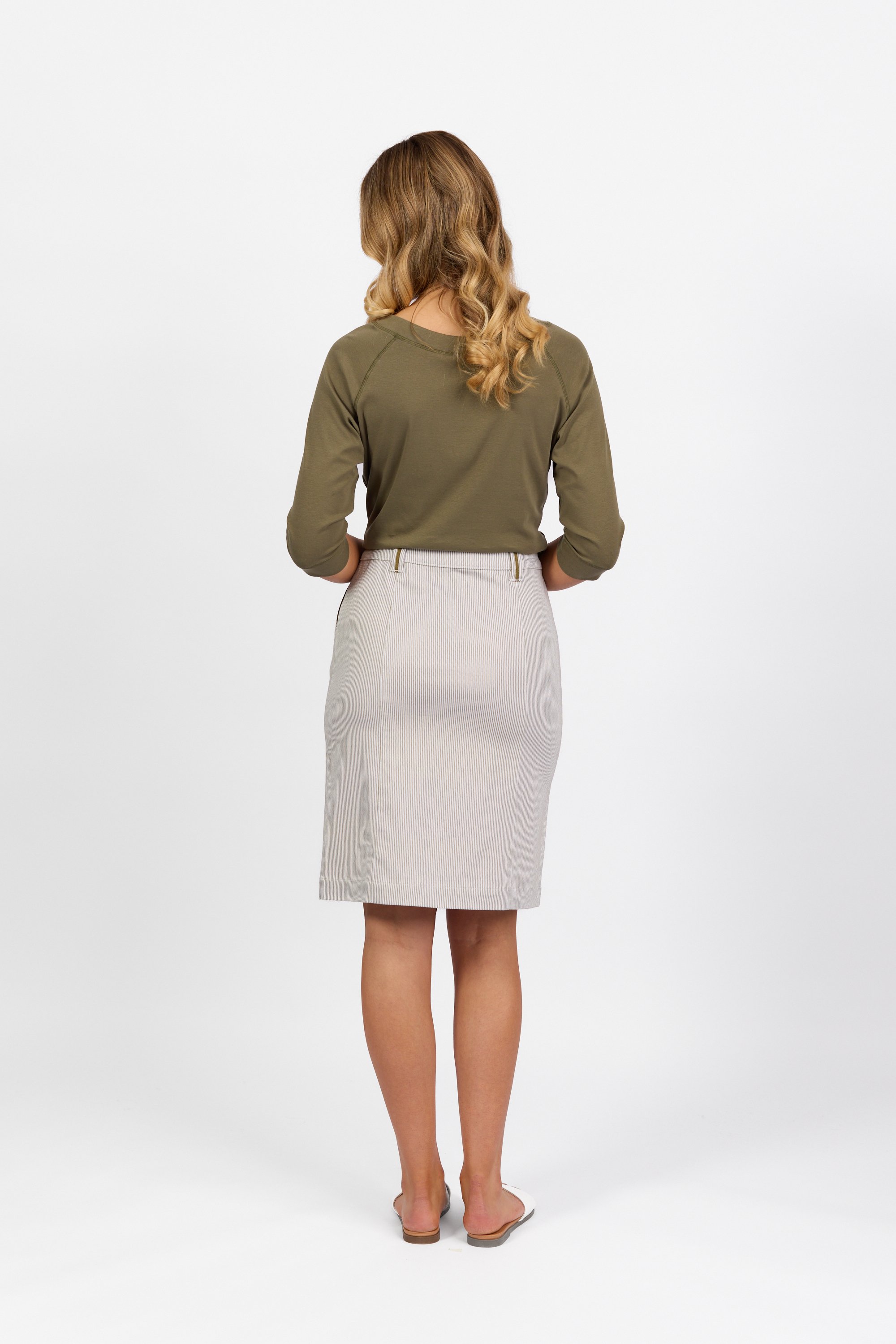 VASSALLI KNEE LENGTH SKIRT WITH CONTRAST BUTTONS AND TRIM