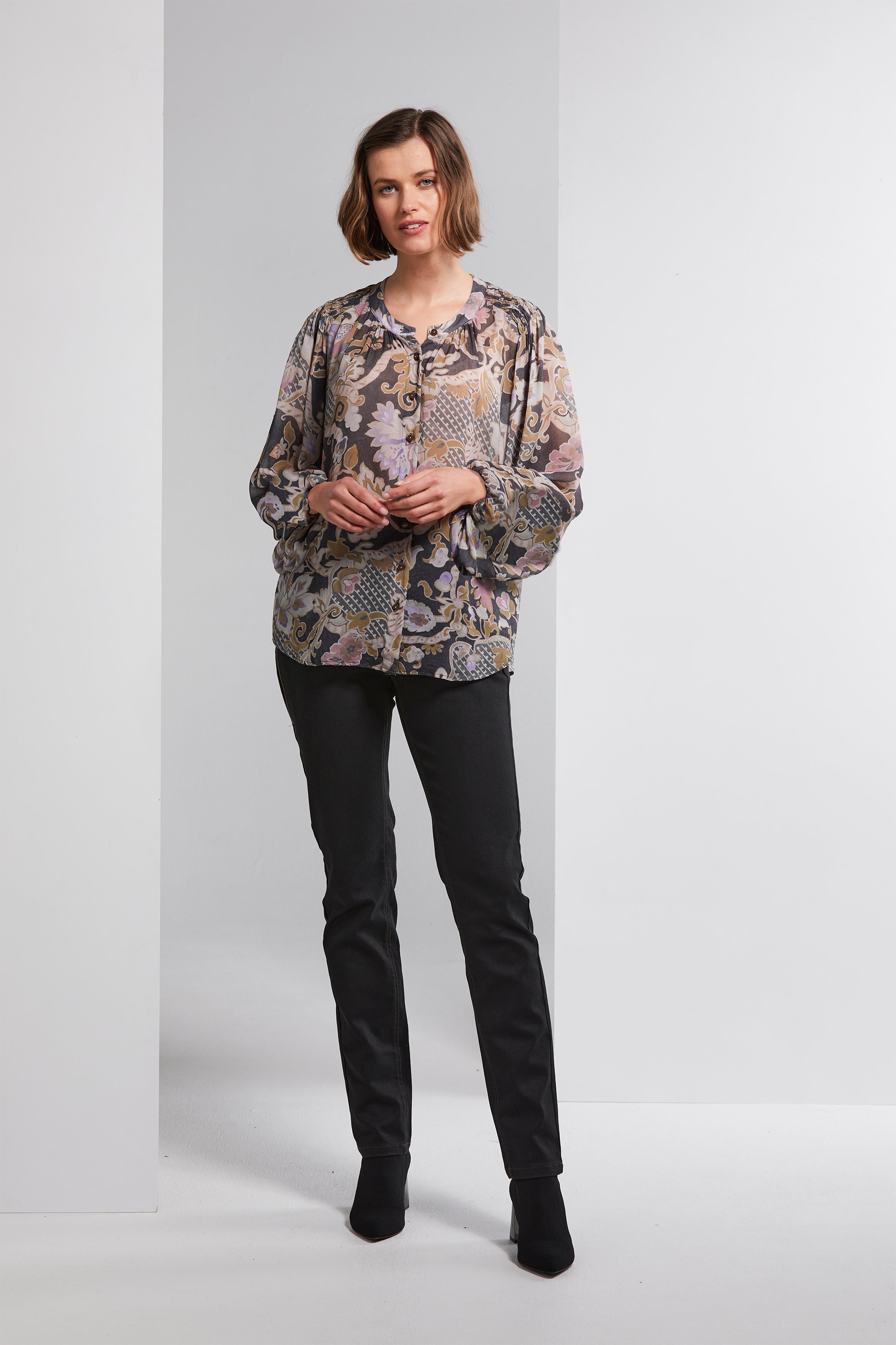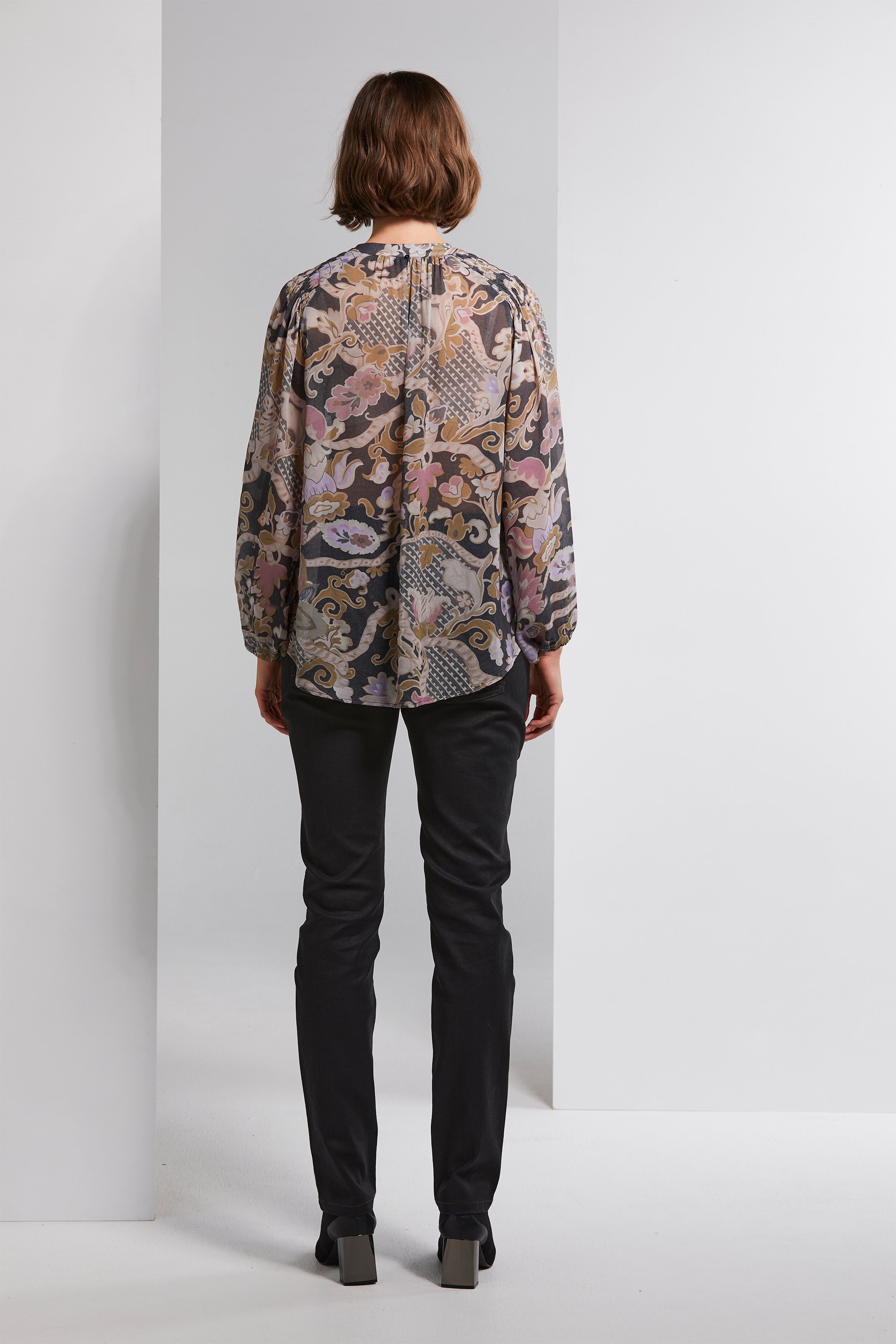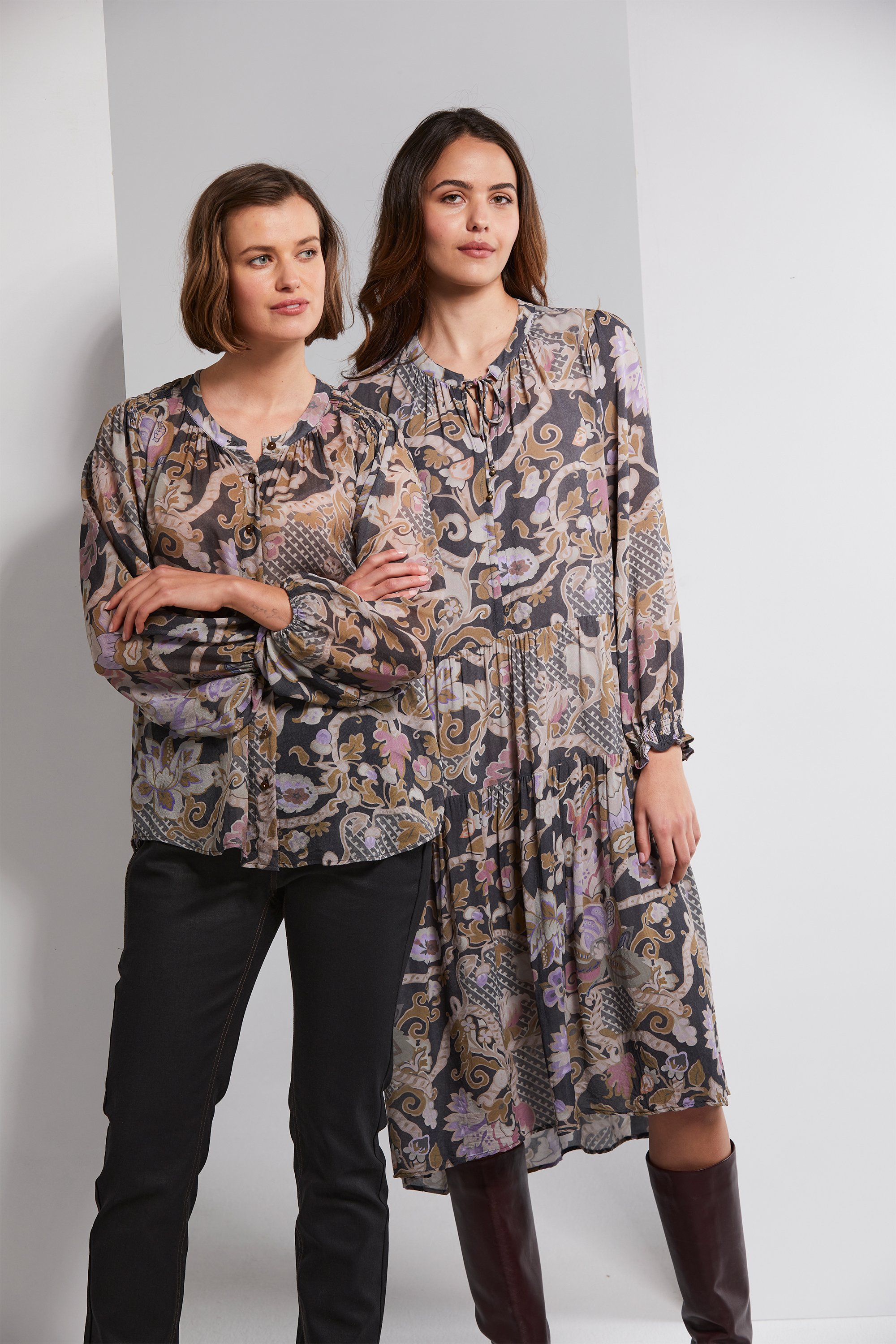Elevate your style with the sheer elegance of the Knight Shirt. Its sheer viscose georgette fabric beautifully complements the modern print. The top sleeves are adorned with shirred detailing, providing a hint of sophistication. Soft gathers at the neckline and voluminous sleeves create a captivating look. This shirt is a must-have for those who appreciate contemporary design with a touch of grace.