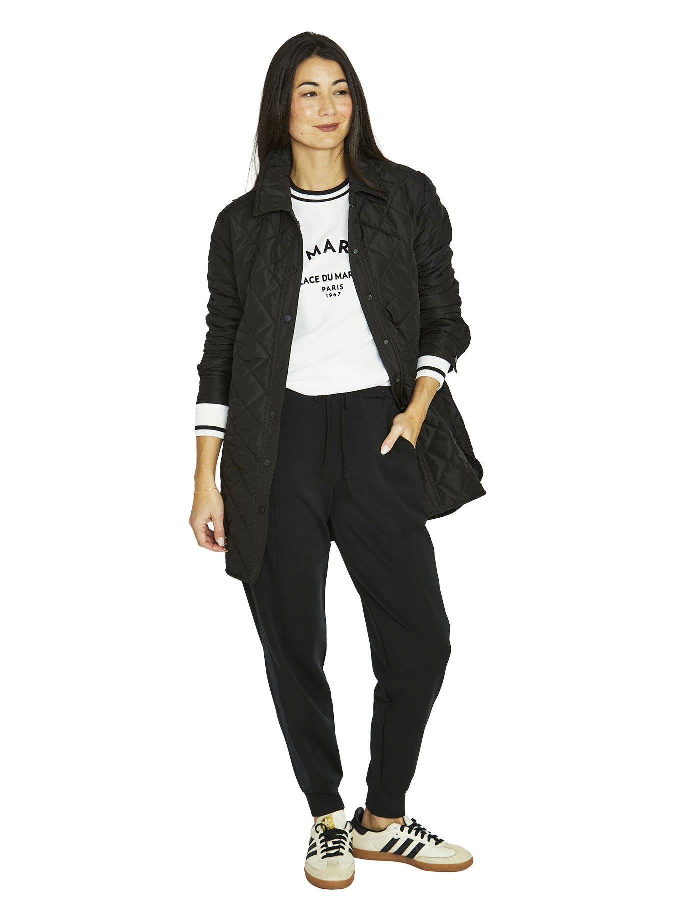 Long Puffer jacket with diamond quilted design, slightly curve hemline.