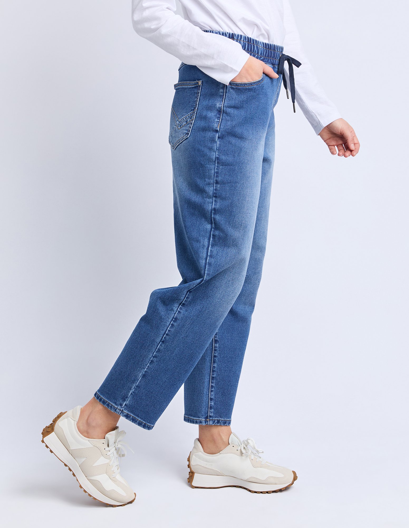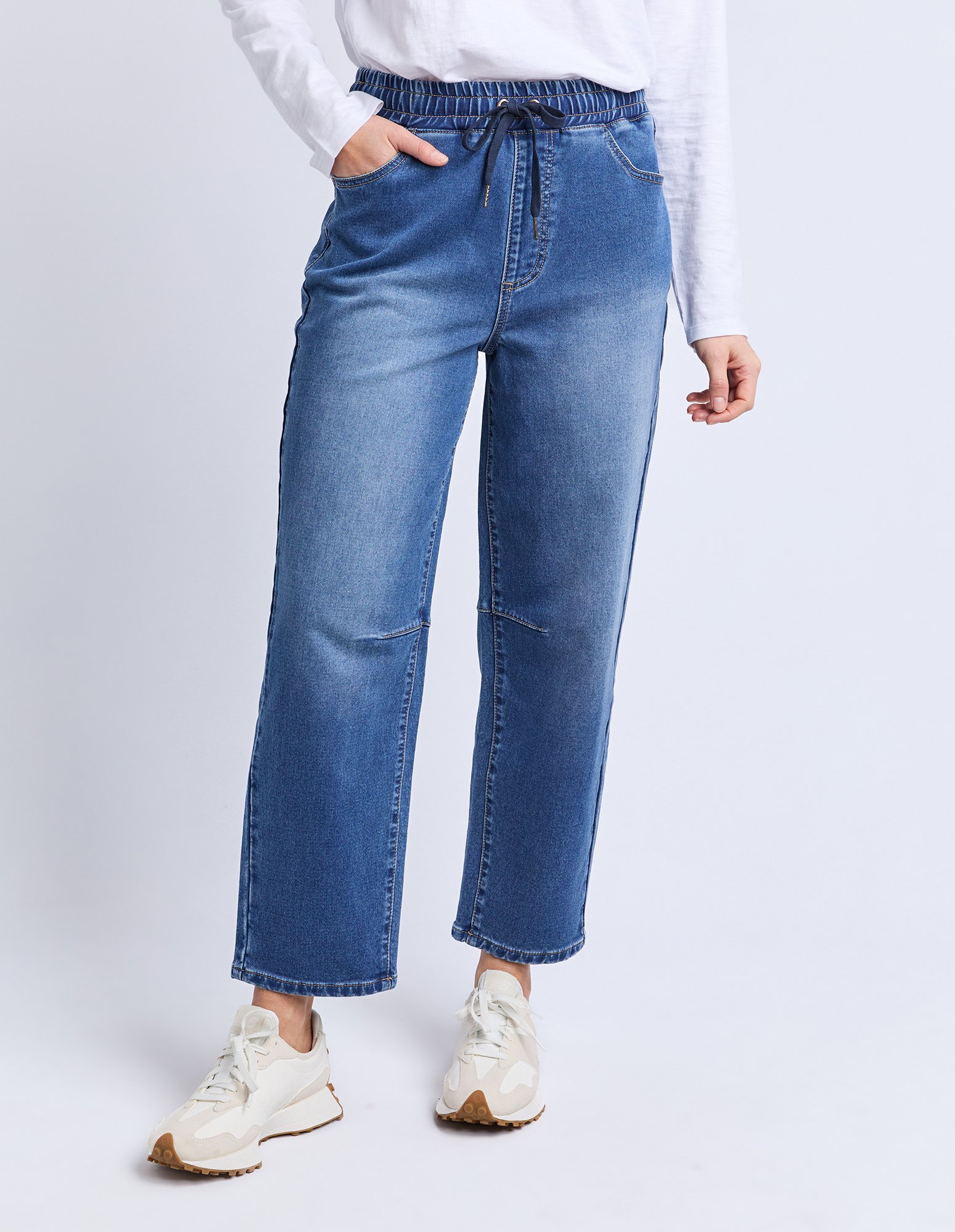 The Elm Marta Barrel Jogger offers a fresh take on denim with a relaxed barrel-leg shape. Crafted from stretch denim for comfort, these ankle-length joggers feature a true-to-size fit that’s easy to wear. Style with a classic tee or cosy crew and sneakers for laid-back everyday dressing.