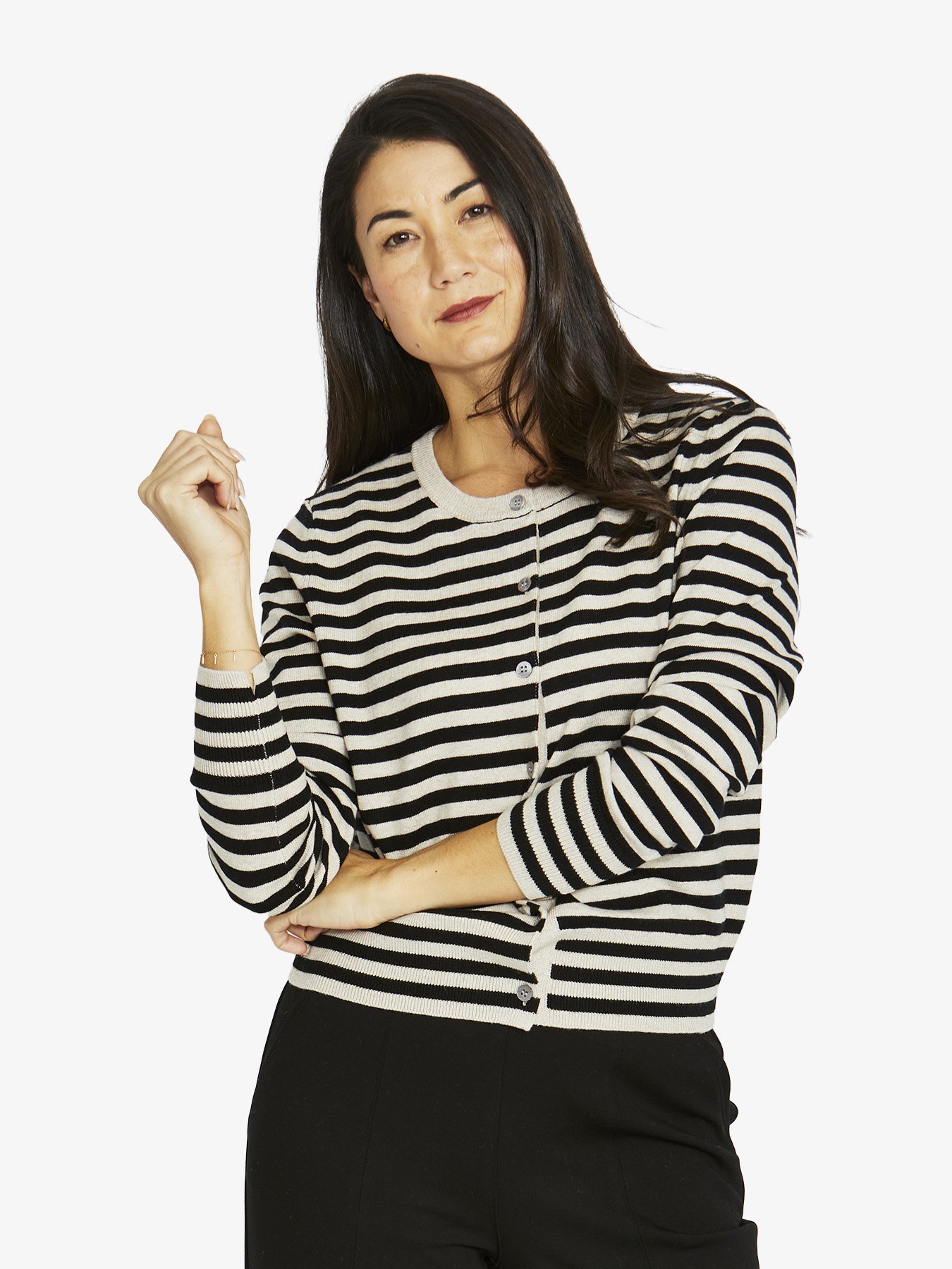 Fine Cotton/wool crew neck, yarn dyed cardigan