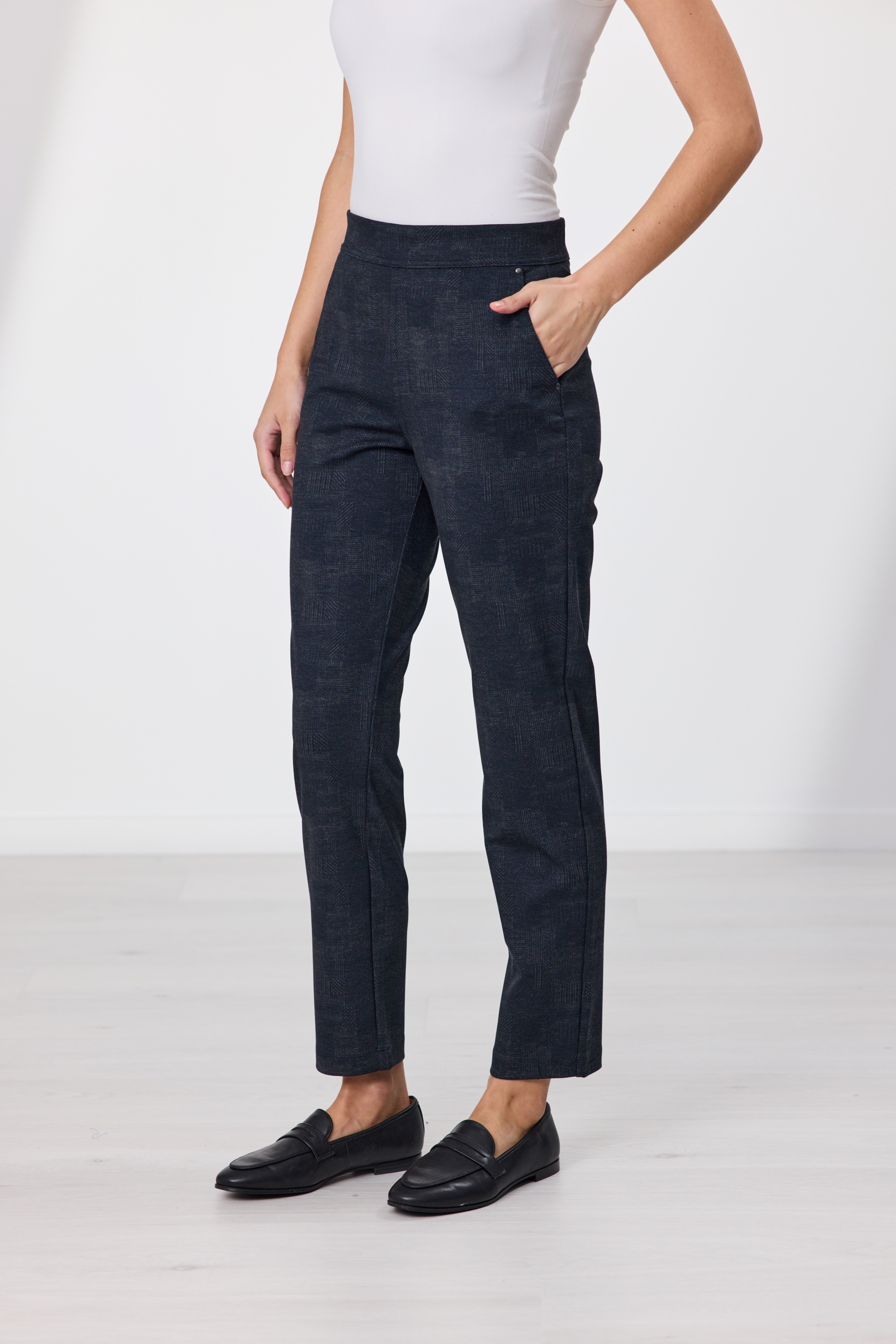 Your go-to pant this winter. The fully elasticated waistband provides a secure and adjustable fit, while the slim leg design adds a sleek and stylish touch. With front pockets for added convenience, these full-length Ponti pants are perfect for both casual and formal occasions.