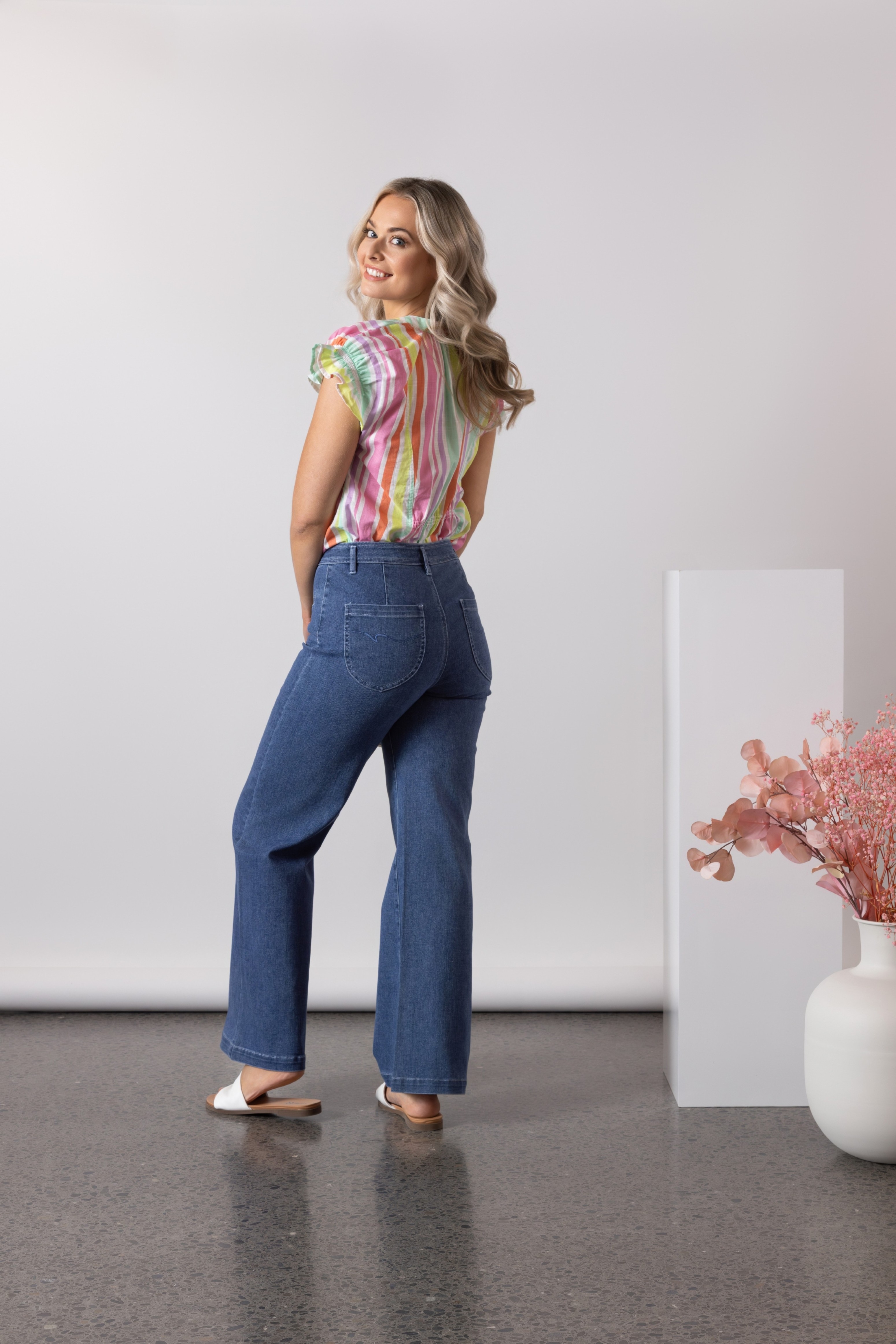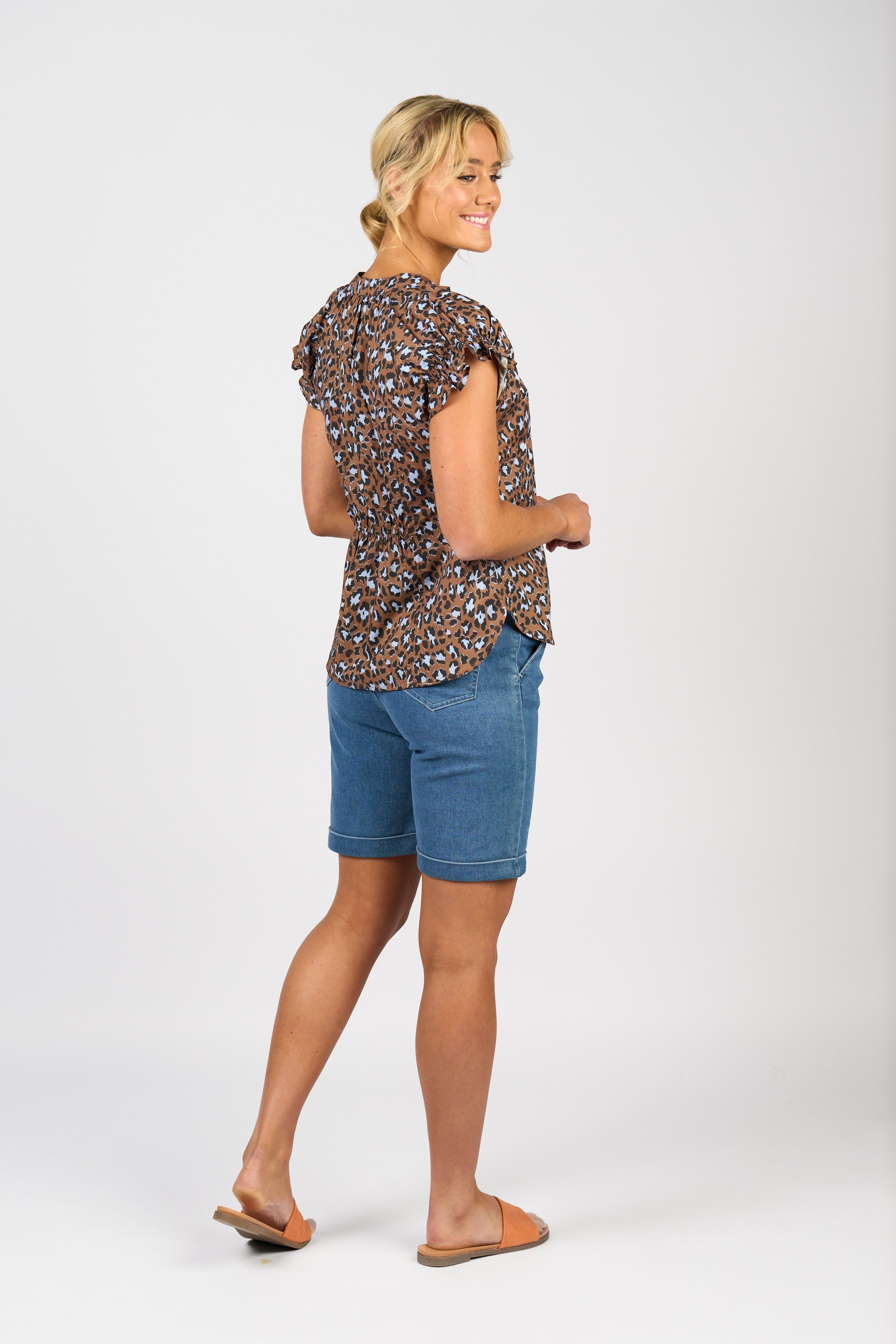 VASSALLI PRINTED DROP SHOULDER TOP WITH SHIRRING DETAIL
