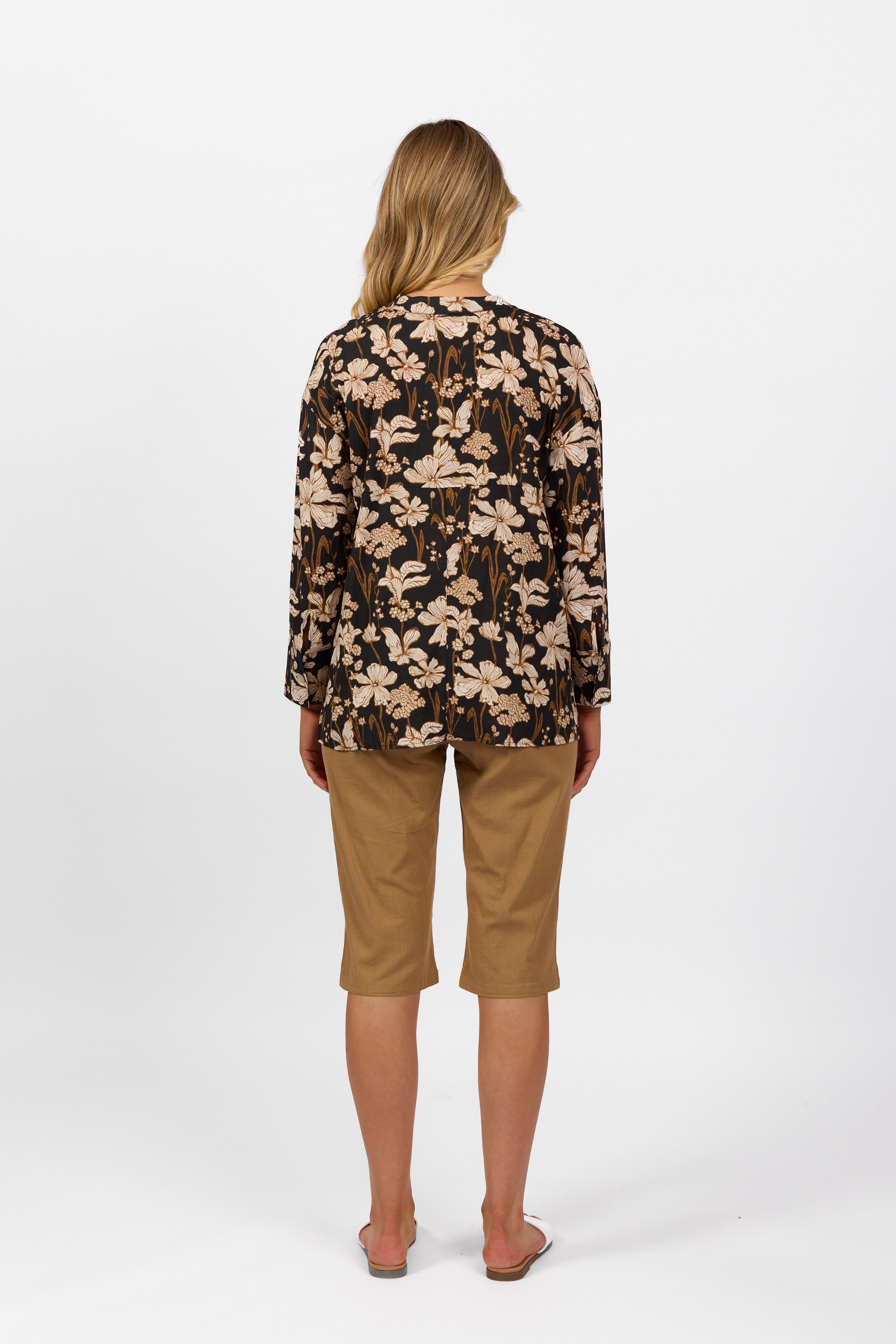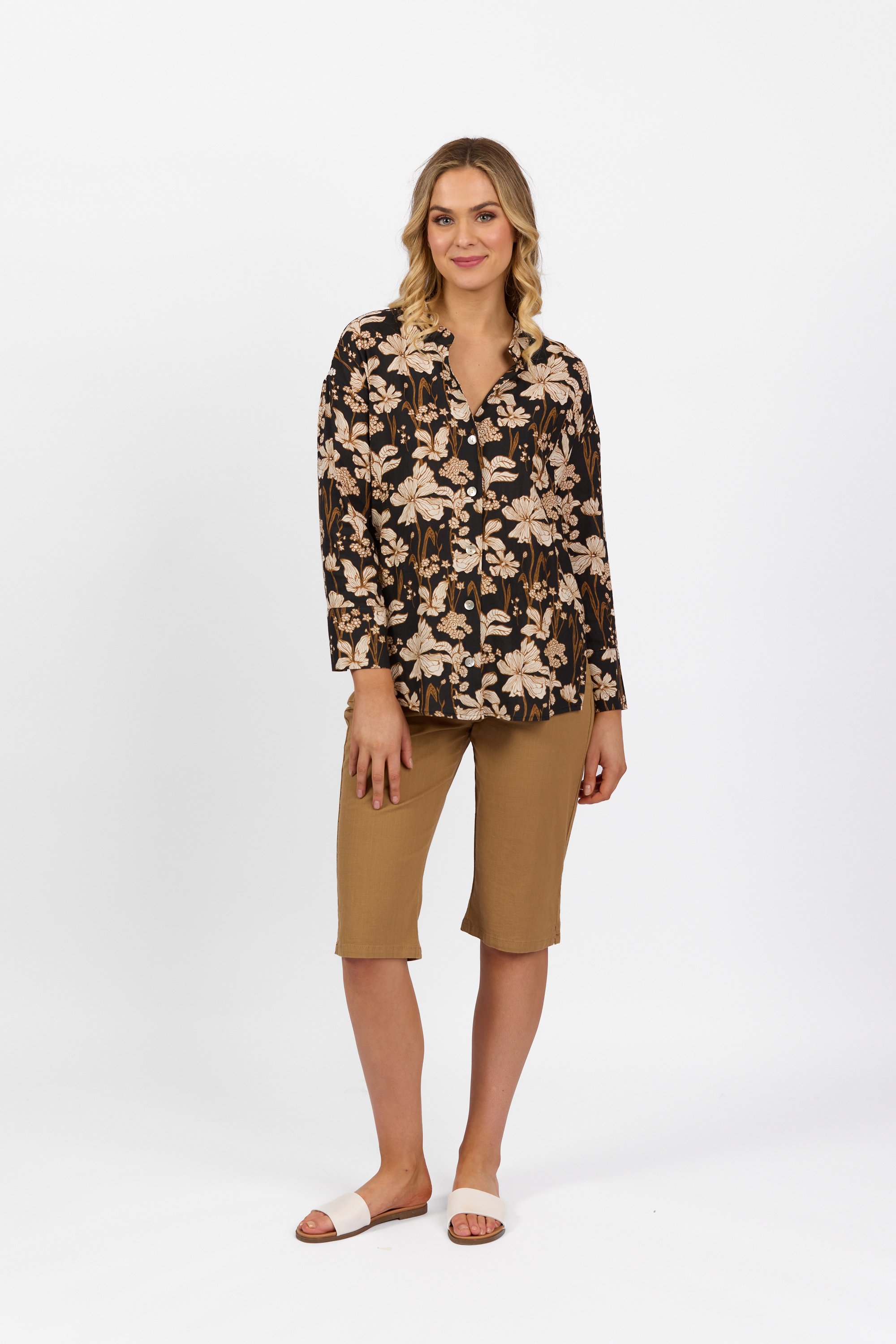 VASSALLI PRINTED LONG SLEEVE CHINESE COLLAR SHIRT WITH SIDE SPLITS