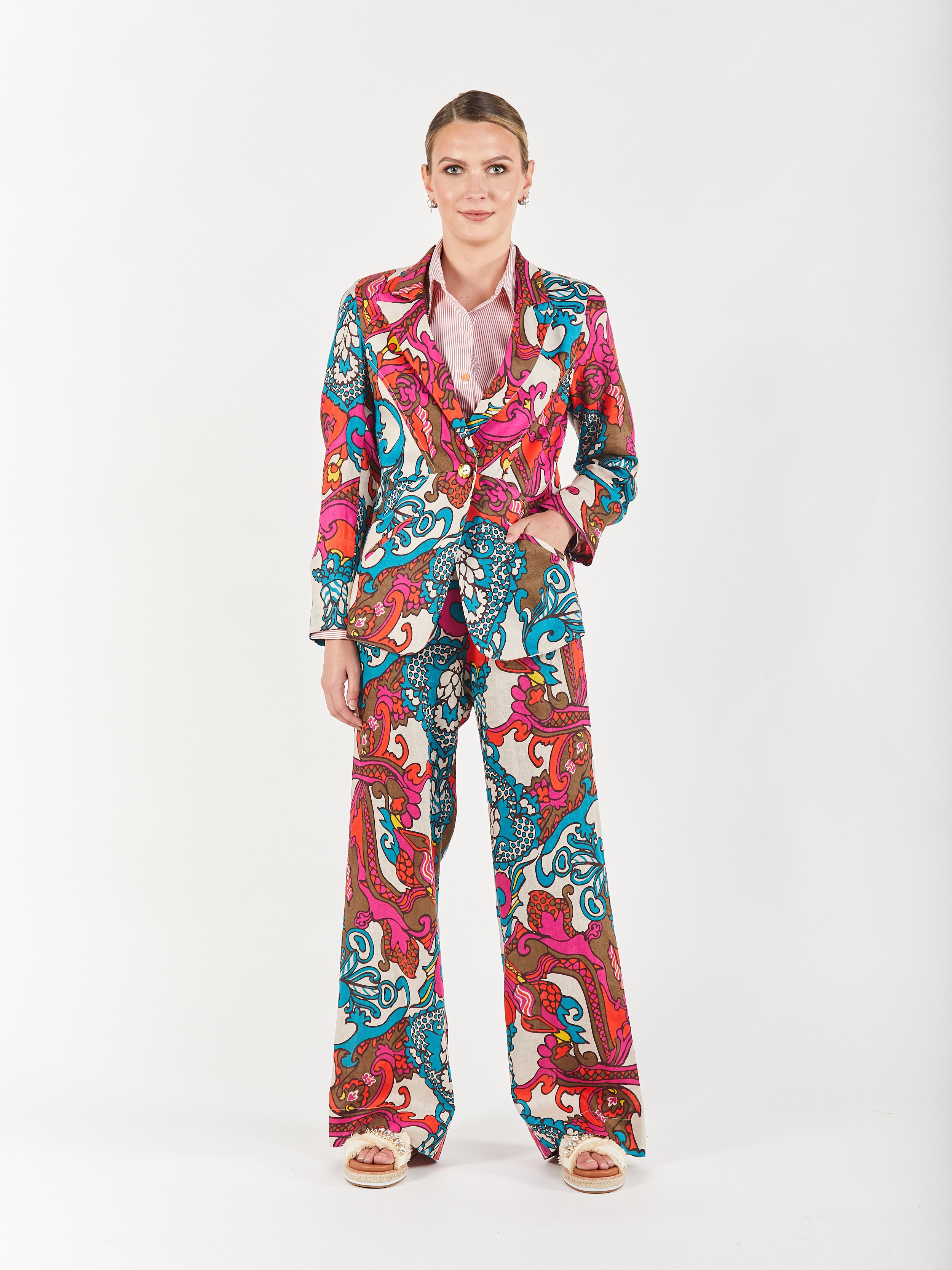 Obi Designer Jon Dyball is renowned for his impeccable tailoring and the Pucci Boyfriend Blazer is no exception. This blazer reworks a classic jacket style with modern appeal, intricate seamed detail, semi lined, fastening at the front to create structure, two front pockets, resulting in a covetable piece you will wear again and again. The impressive Pucci fabric has been exclusively imported for the Obi summer collection, and it's all on show with the Pucci Blazer.