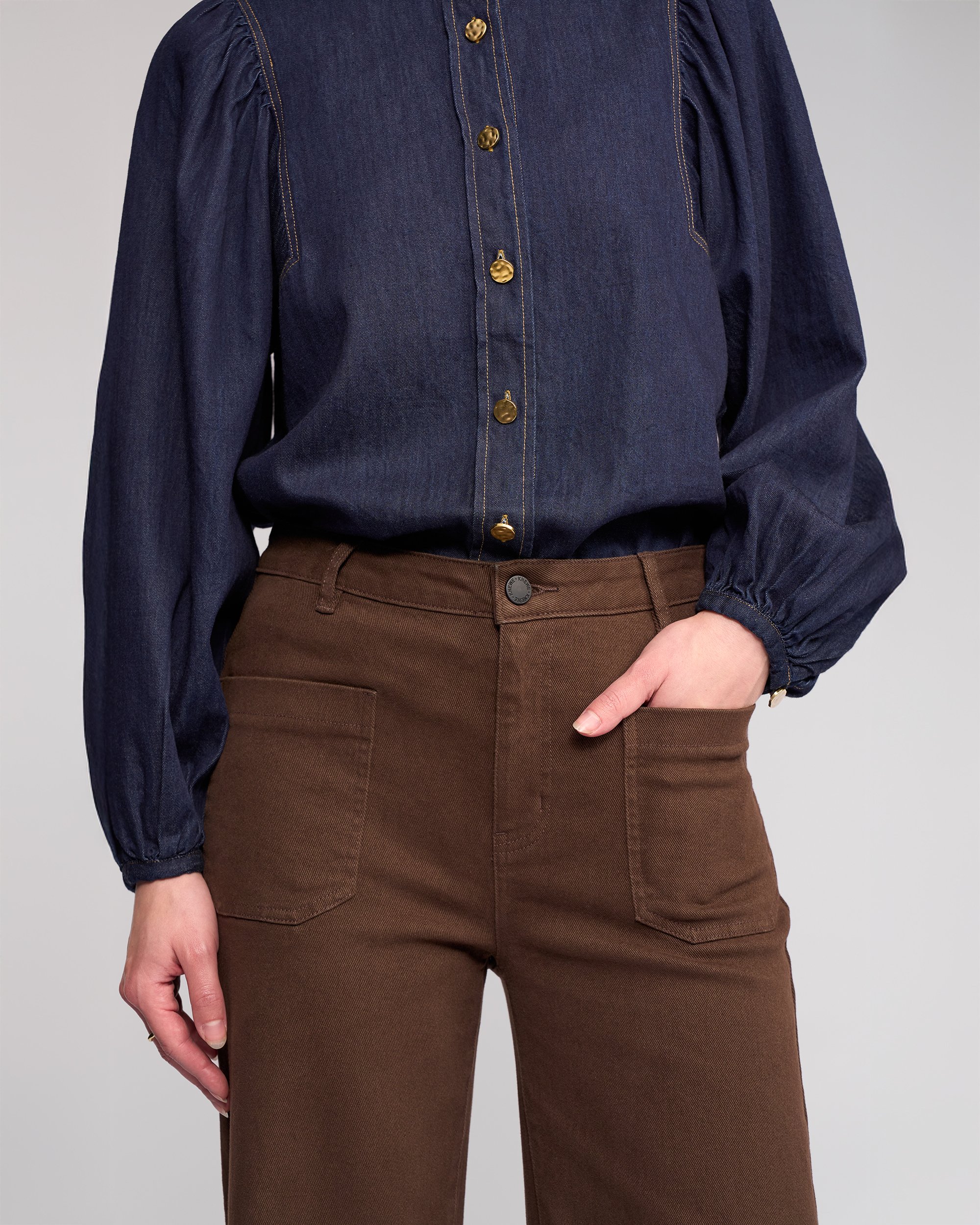 • Leather 'KNEWE' brand patch on wearers back right-hand side waistband
