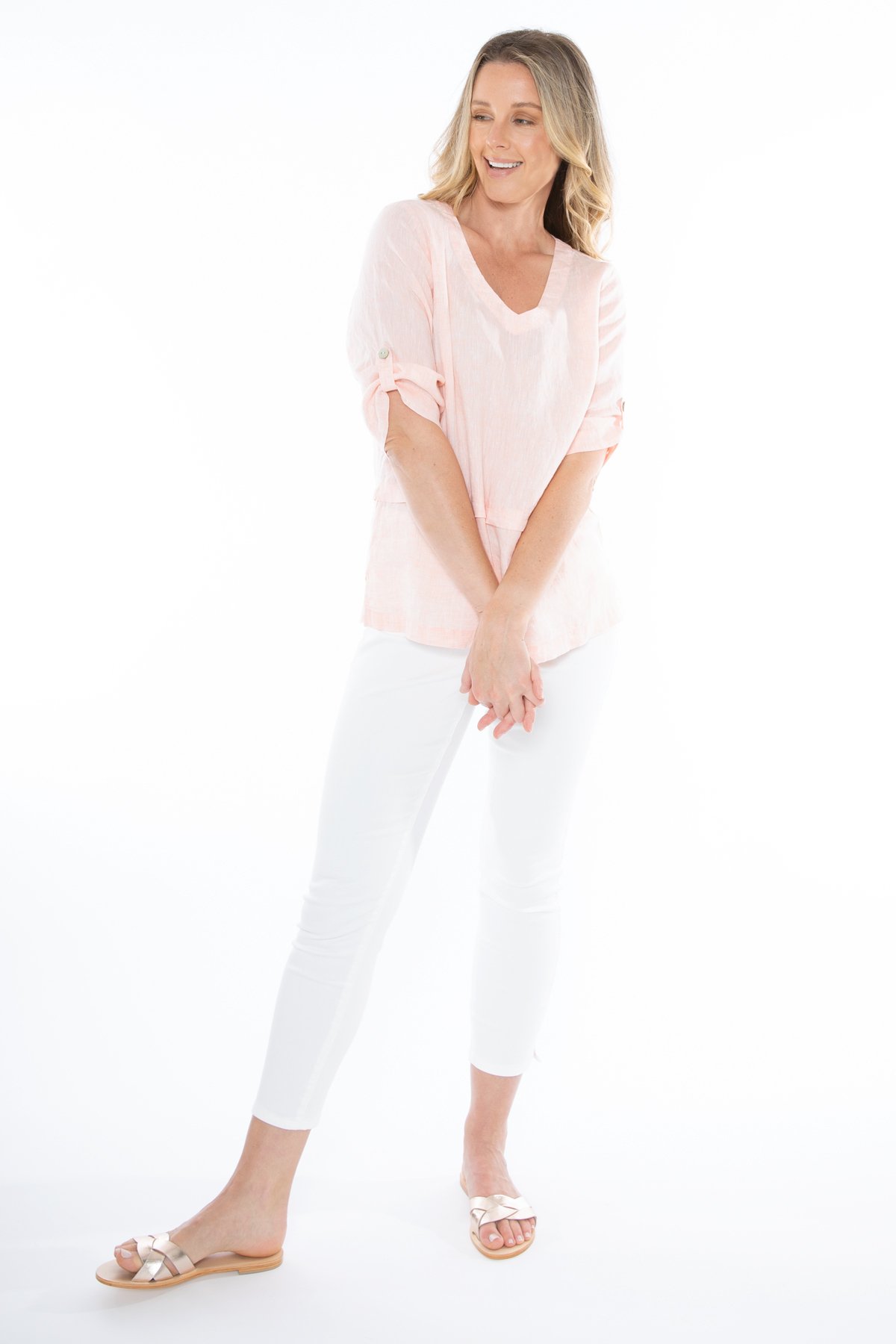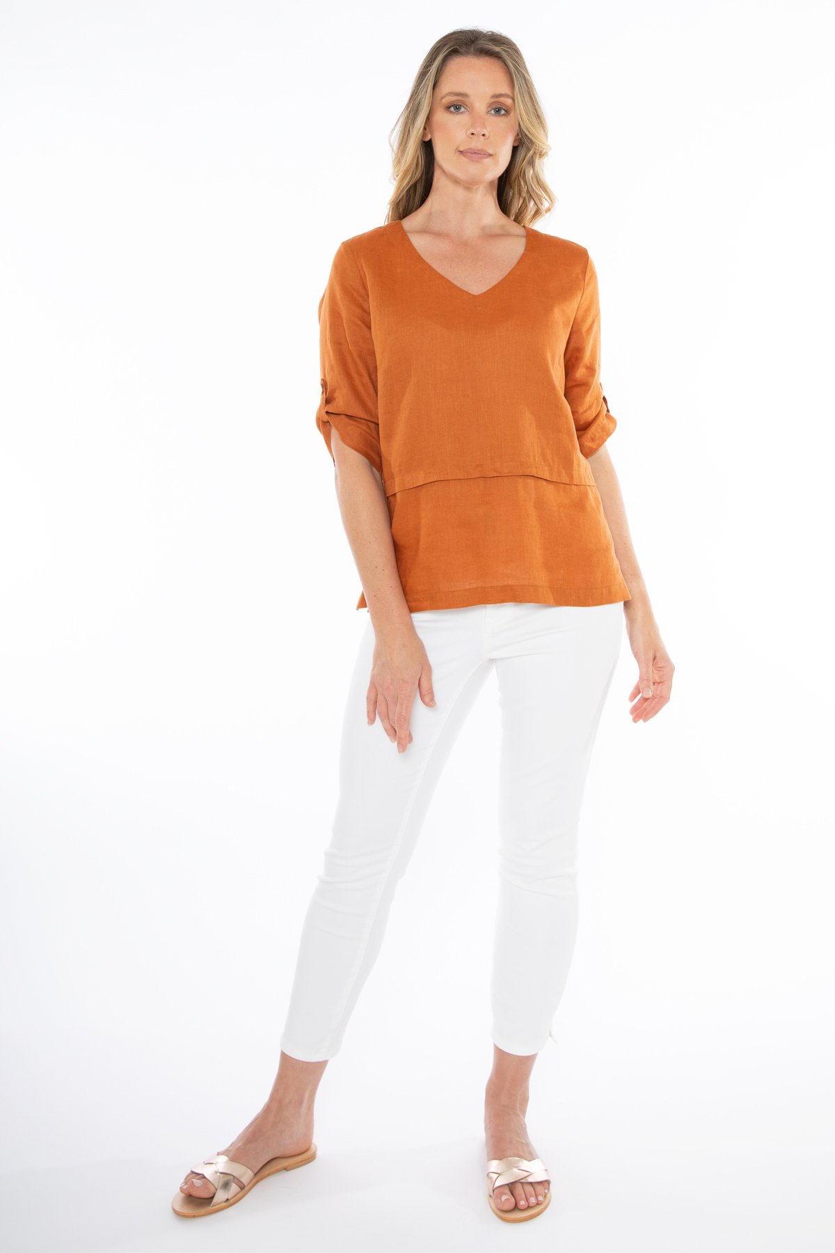 Classis top from Jump. V neck with nice sleeve detail.100% Linen.